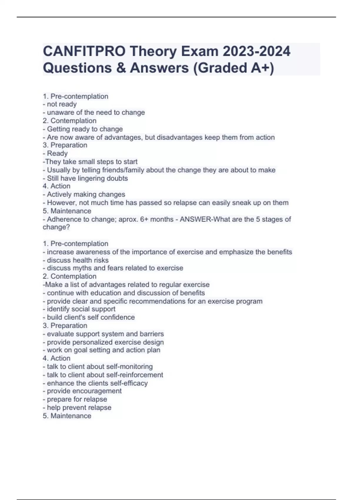 canfitpro theory exam stuvia