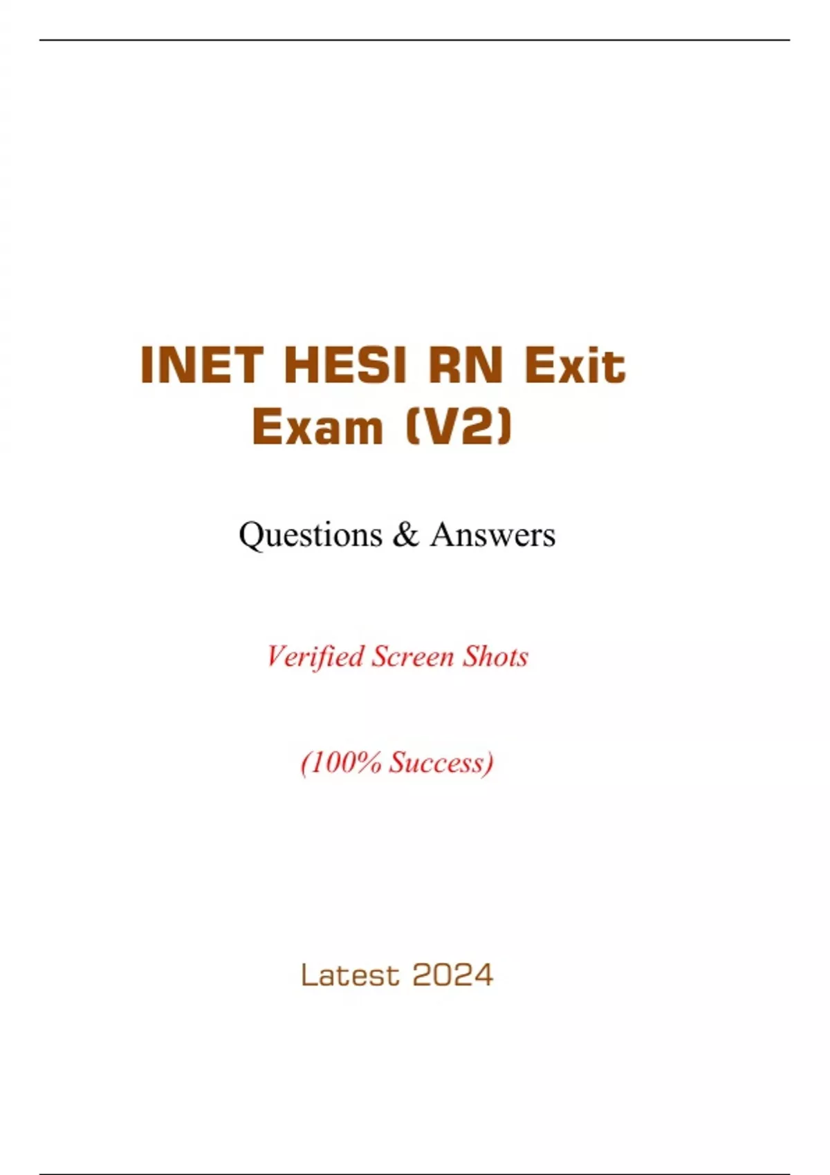 INET HESI RN Exit Exam (V2) - Questions & Answers (Rated A+) Verified Screen Shots (100% Success) Latest 2024