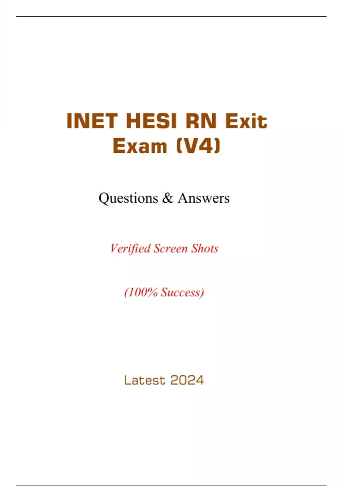 INET HESI RN Exit Exam (V4) - Questions & Answers (Graded A+) Verified Screen Shots (100% Success) Latest 2024