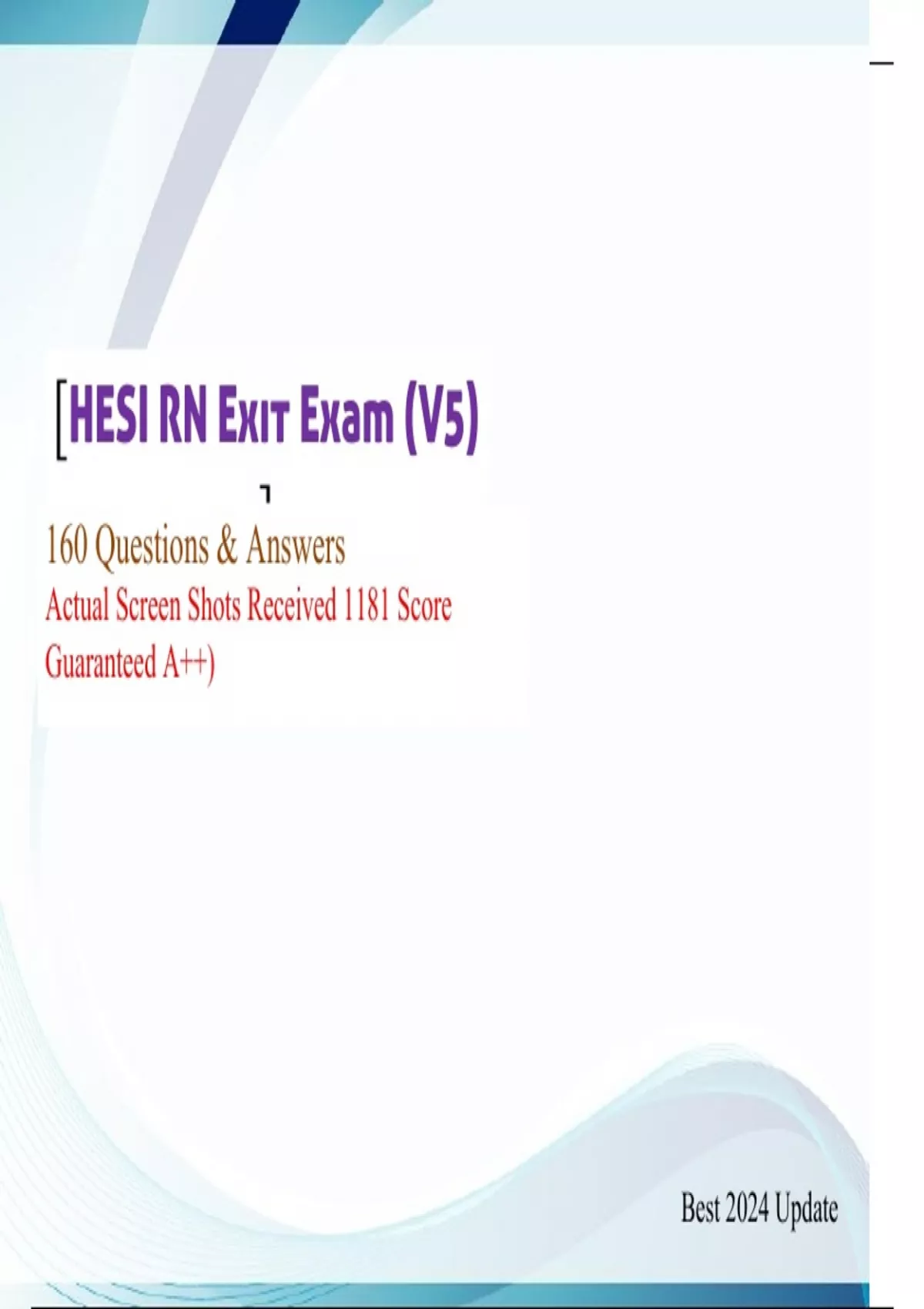 HESI RN Exit Exam (V5) - 160 Questions & Answers (Graded A+) Actual Screen Shots Best 2024 Version