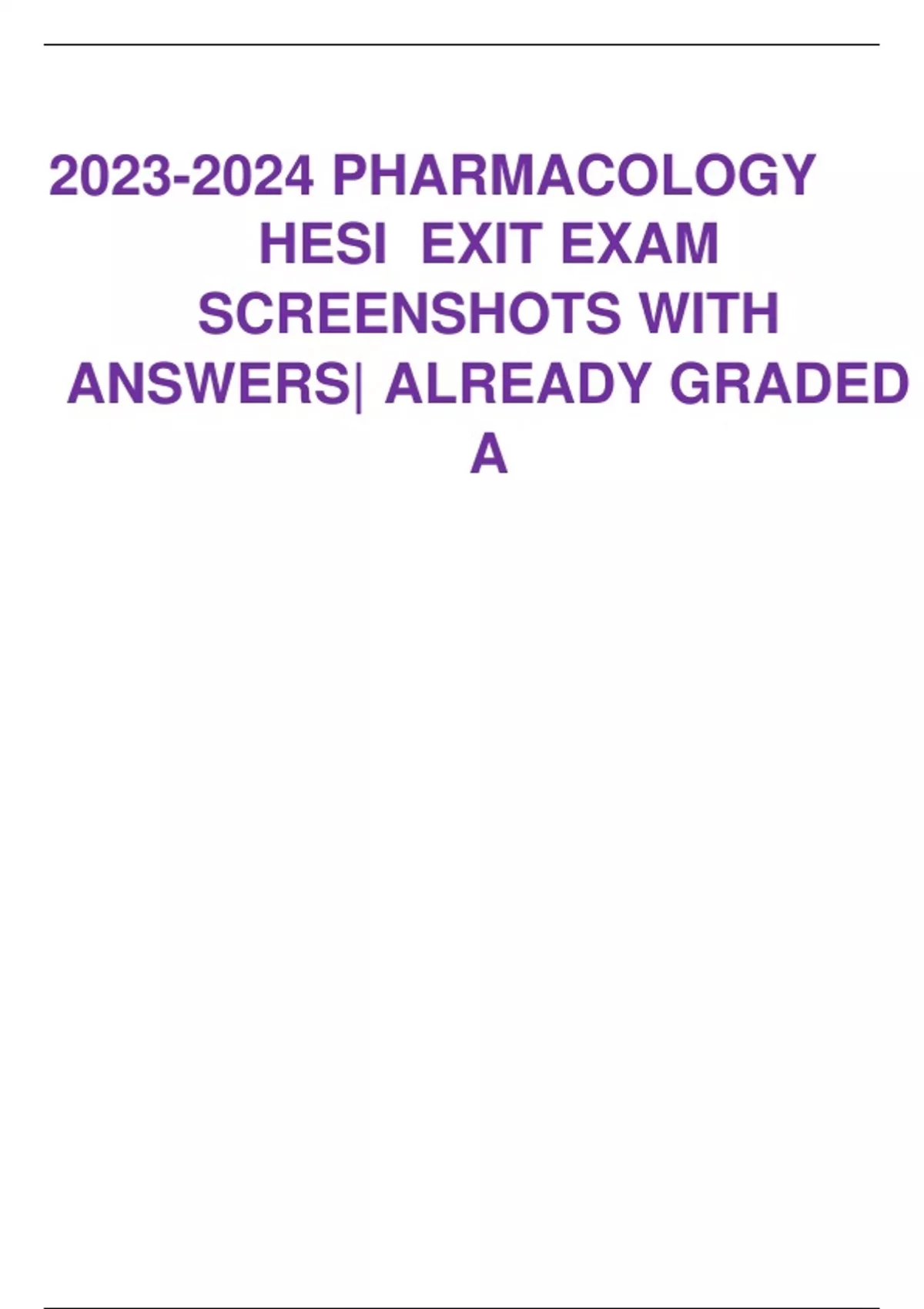 PHARMACOLOGY HESI EXIT EXAM SCREENSHOTS WITH ANSWERS| ALREADY GRADED A