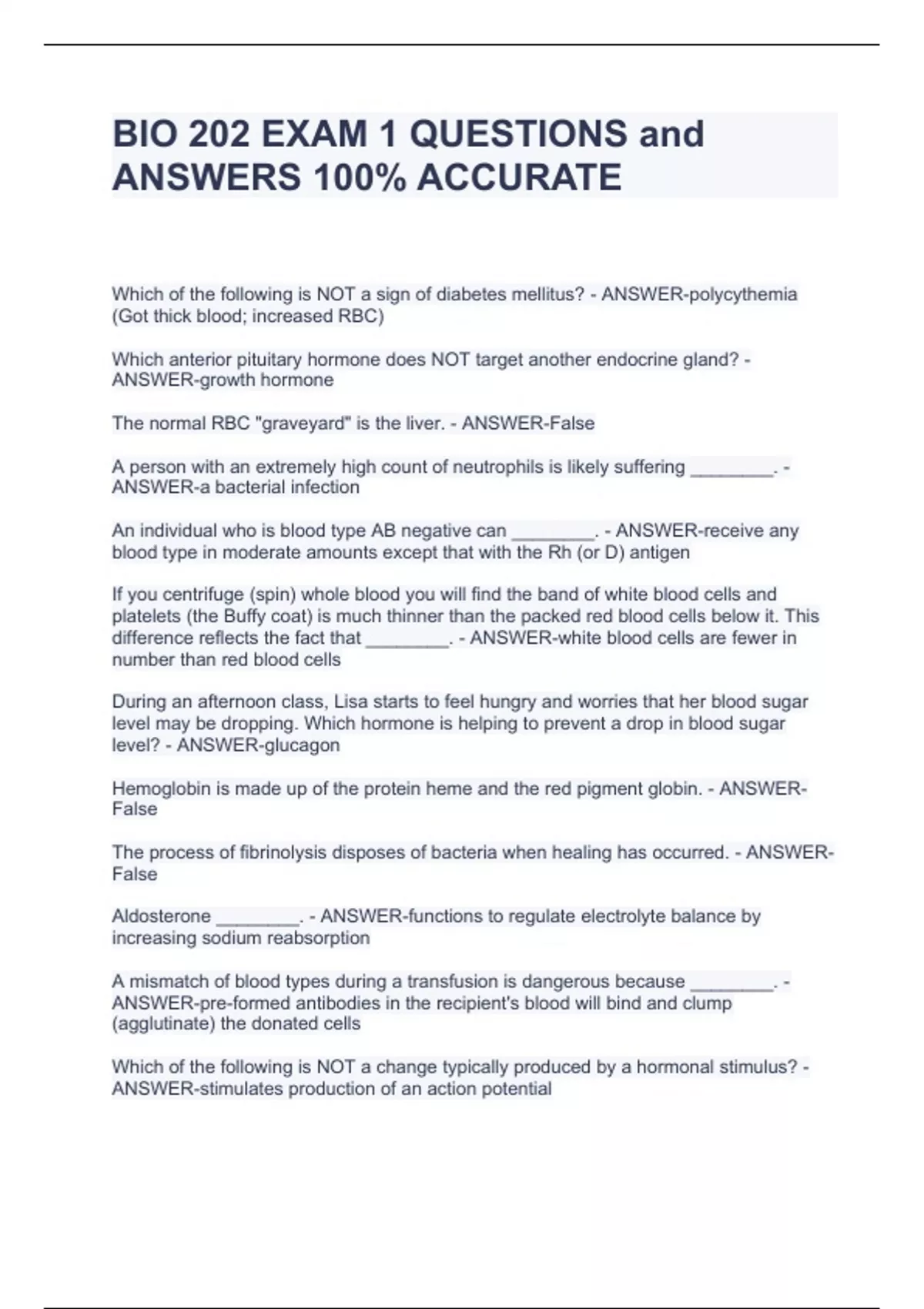 BIO 202 EXAM 1 QUESTIONS and ANSWERS 100% ACCURATE
