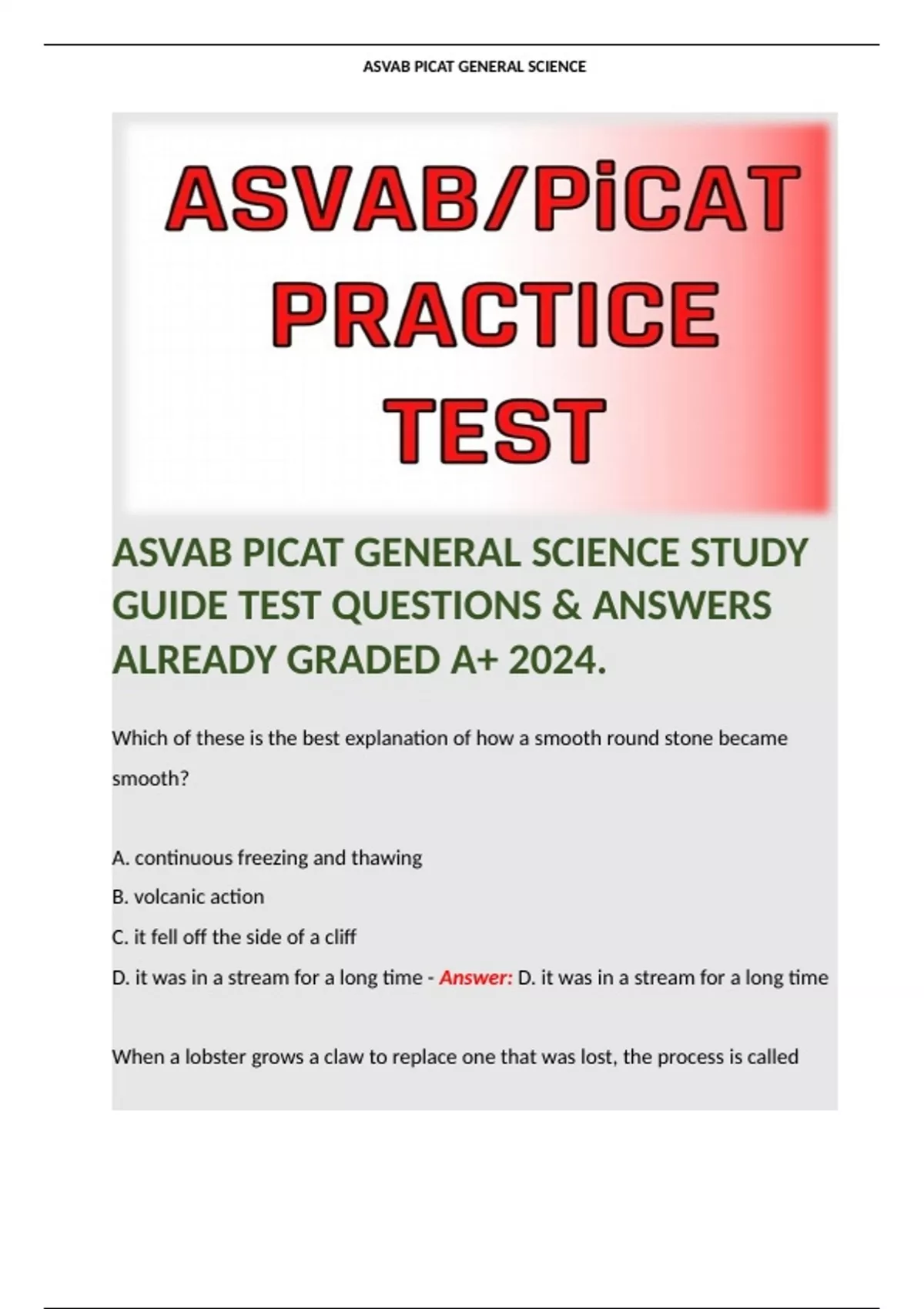 ASVAB PICAT GENERAL SCIENCE STUDY