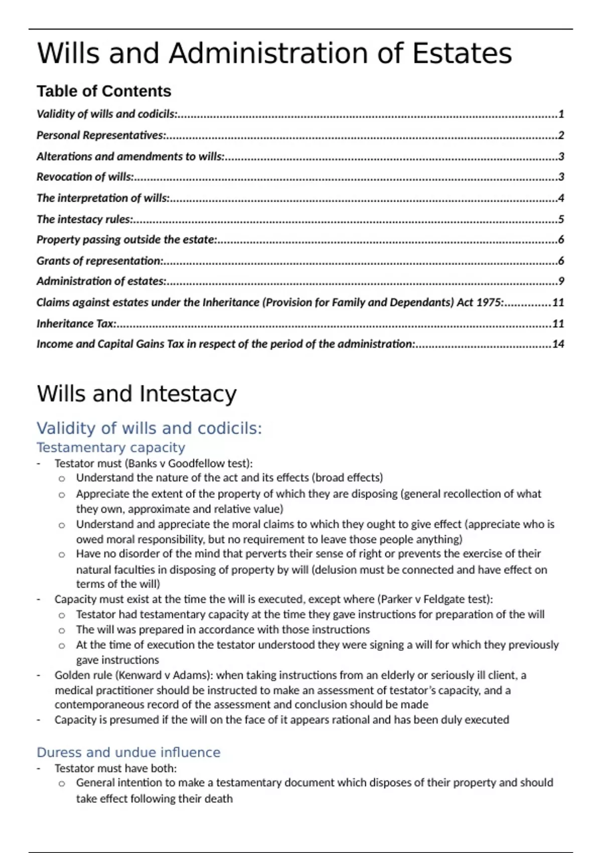 o Testator is coerced into making a will or including particular terms against their judgement and