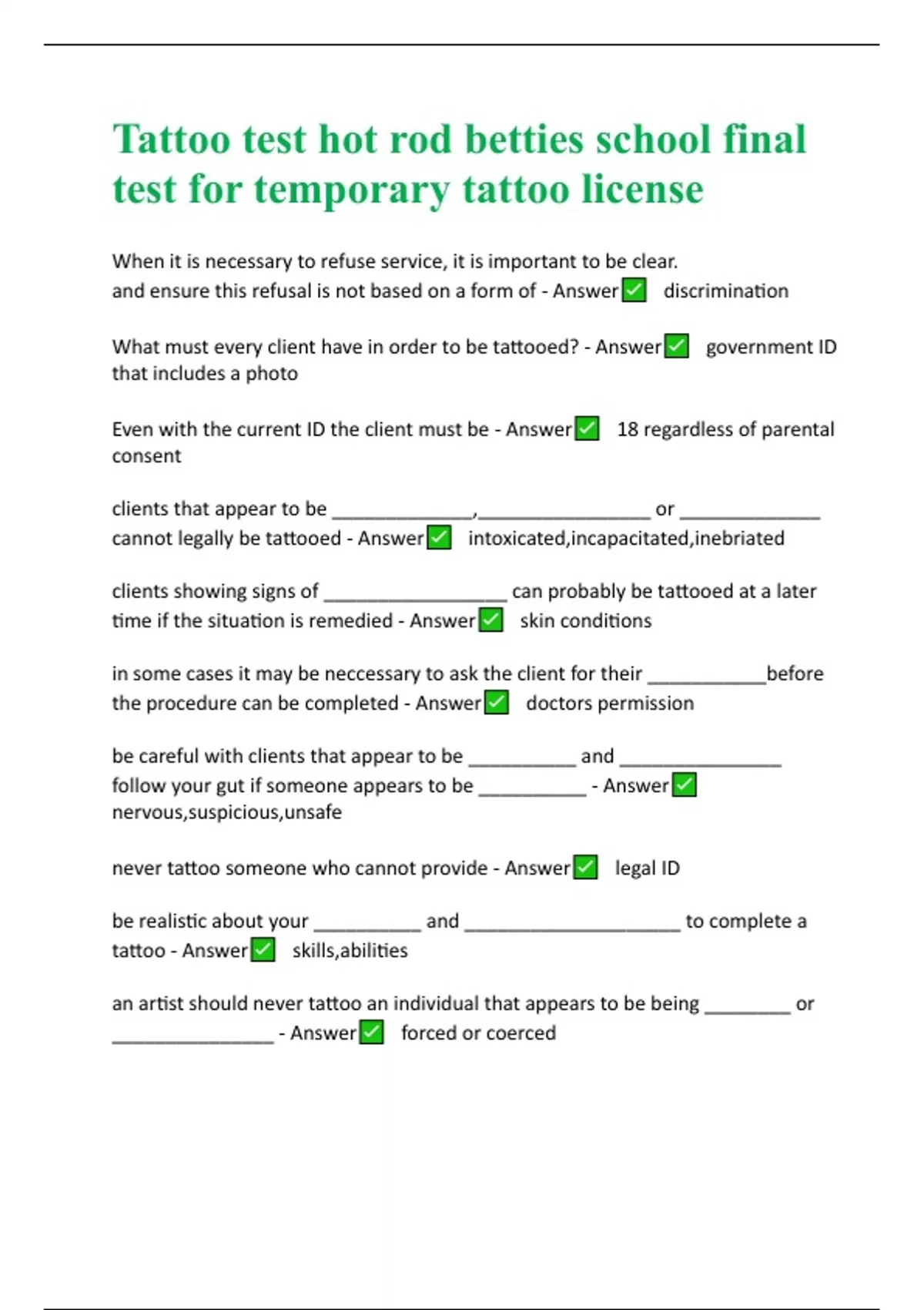 Oregon Tattoo State Board Test BUNDLED 2024 Actual Exam Questions and Answers 100% correct | RATED A+ | NEW UPDATE FOR 2024