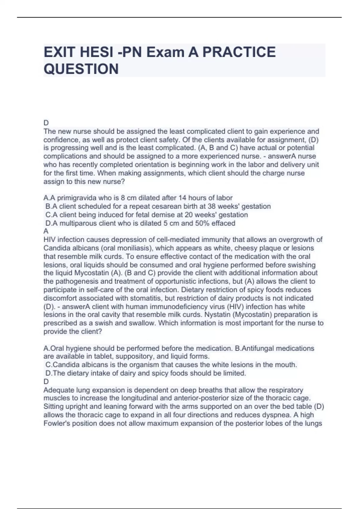 EXIT HESI -PN Exam A PRACTICE QUESTION