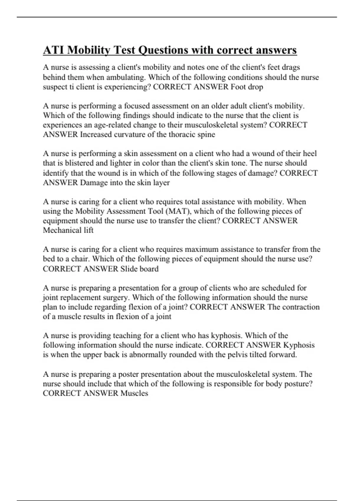 ATI Mobility Test Questions with correct answers