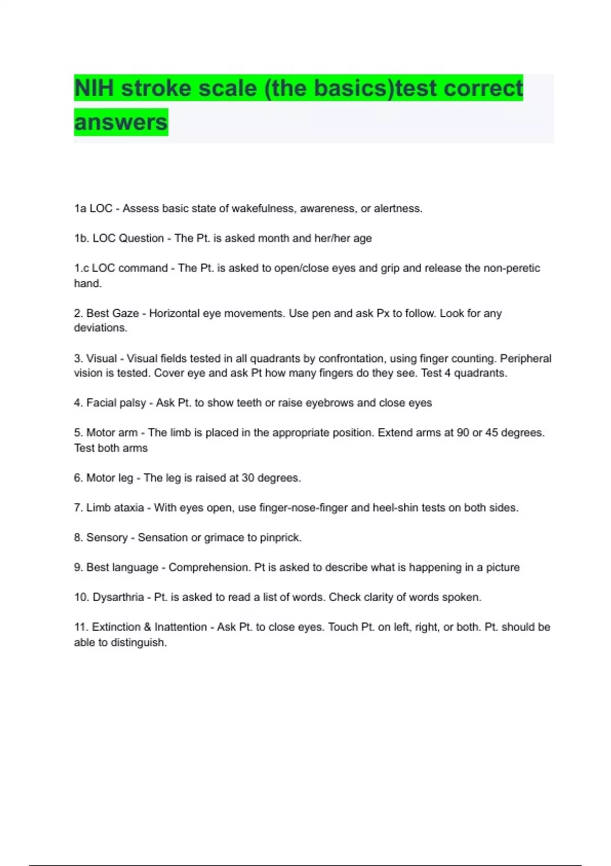NIH stroke scale (the basics)test correct answers
