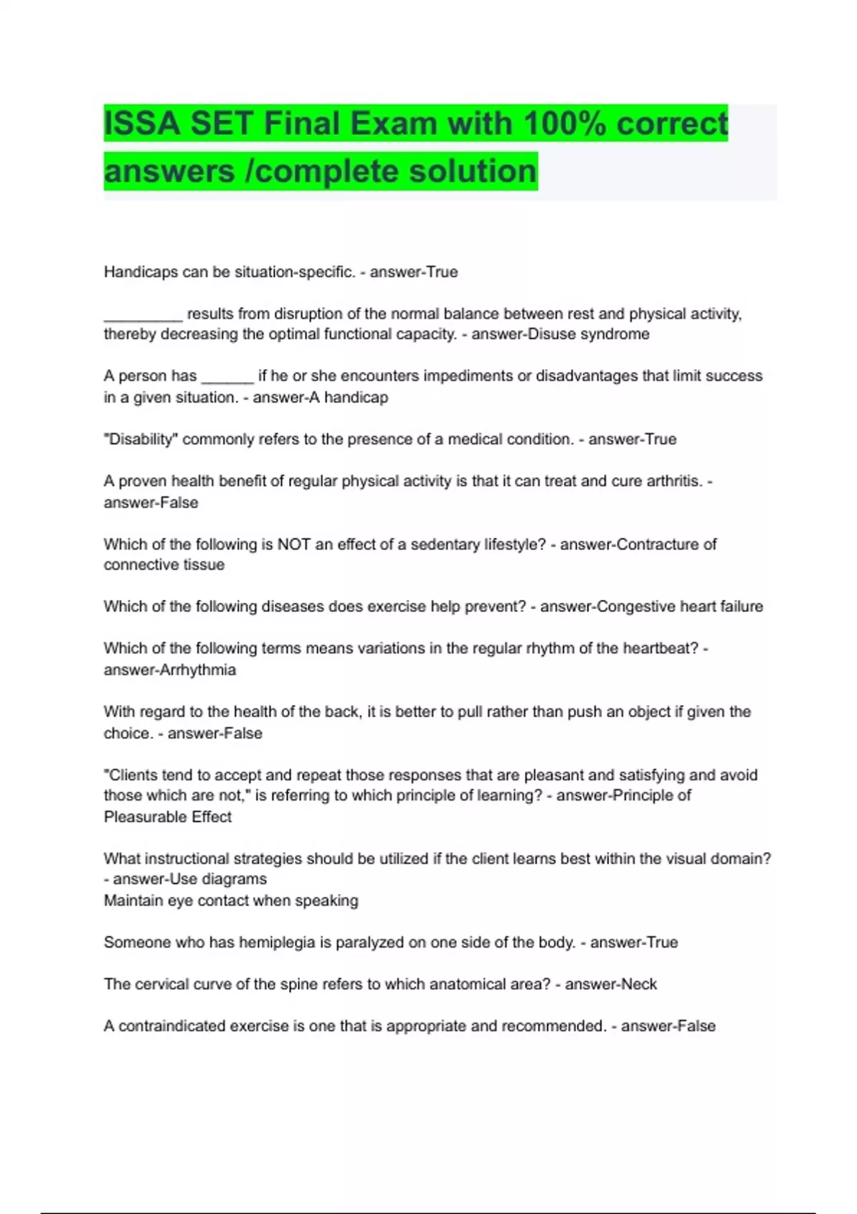 ISSA SET Final Exam with 100% correct answers /complete solution