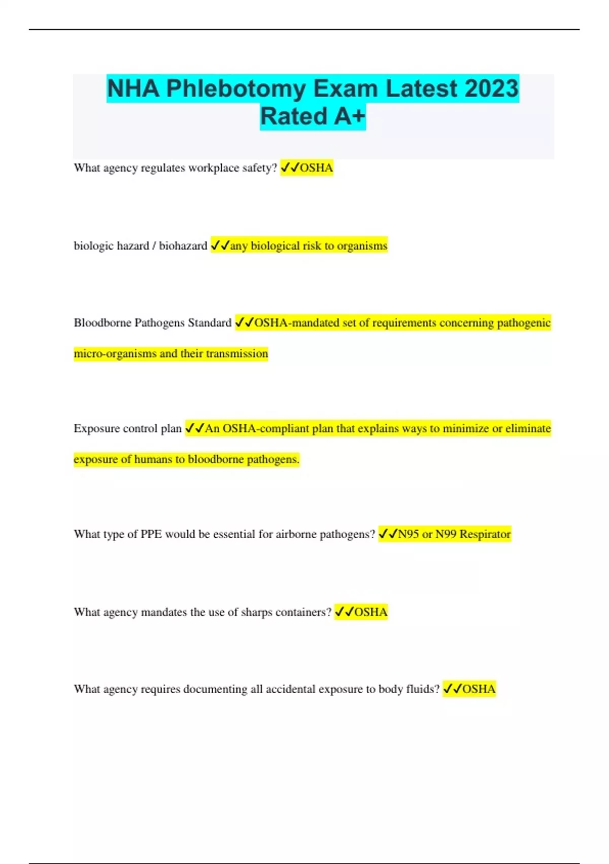 NHA Phlebotomy Exam Latest 2023 Rated A+