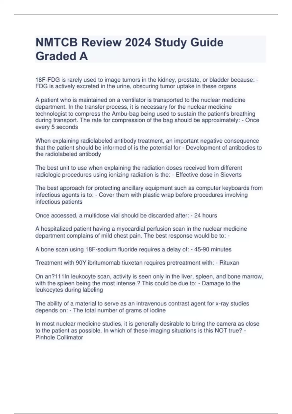NMTCB Review 2024 Study Guide Graded A