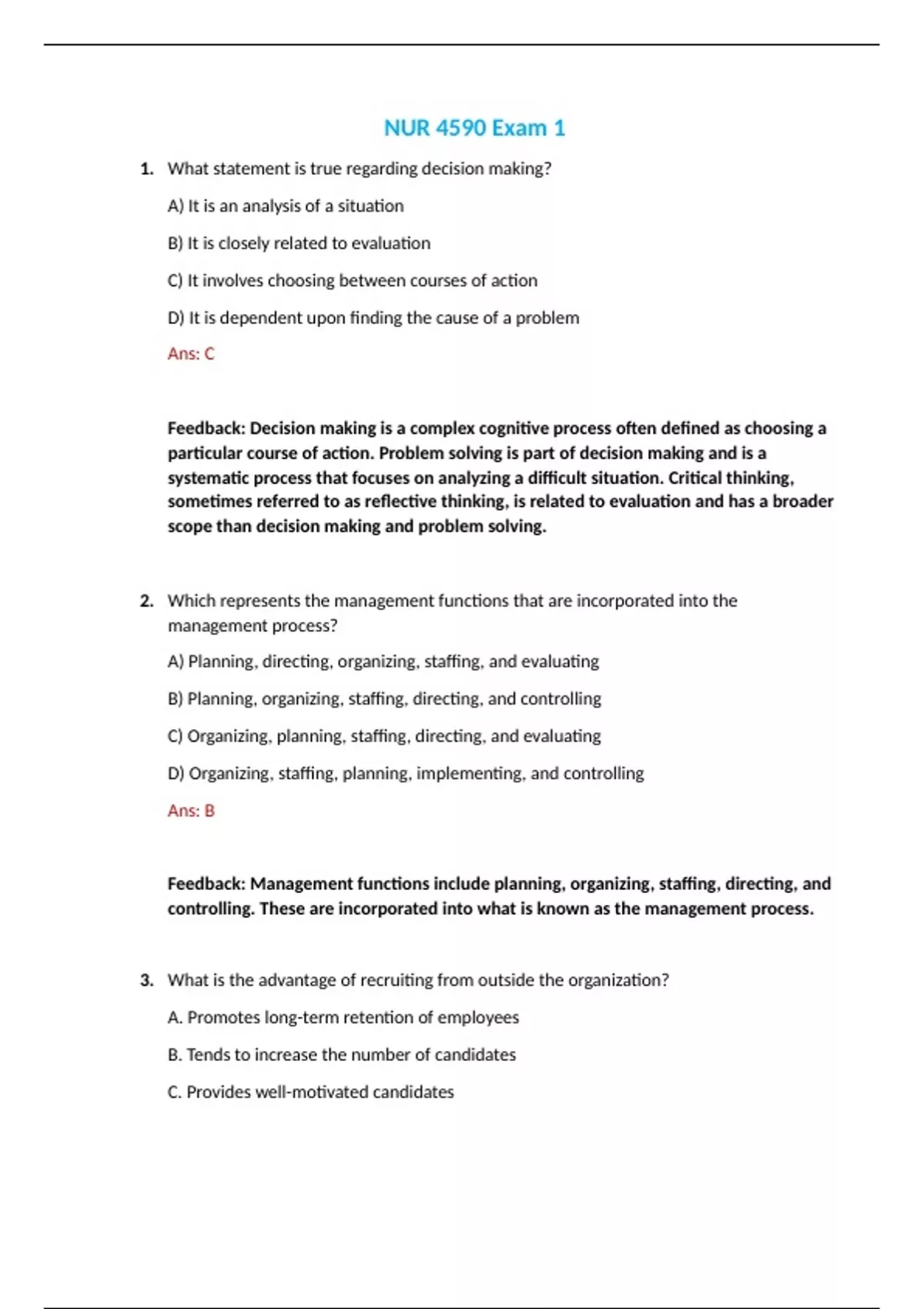 NUR 4590 / NUR4590 Exam 1: Professional Identity of the Nurse Leader Exam 1 Review (Latest 2024/2025) Rasmussen