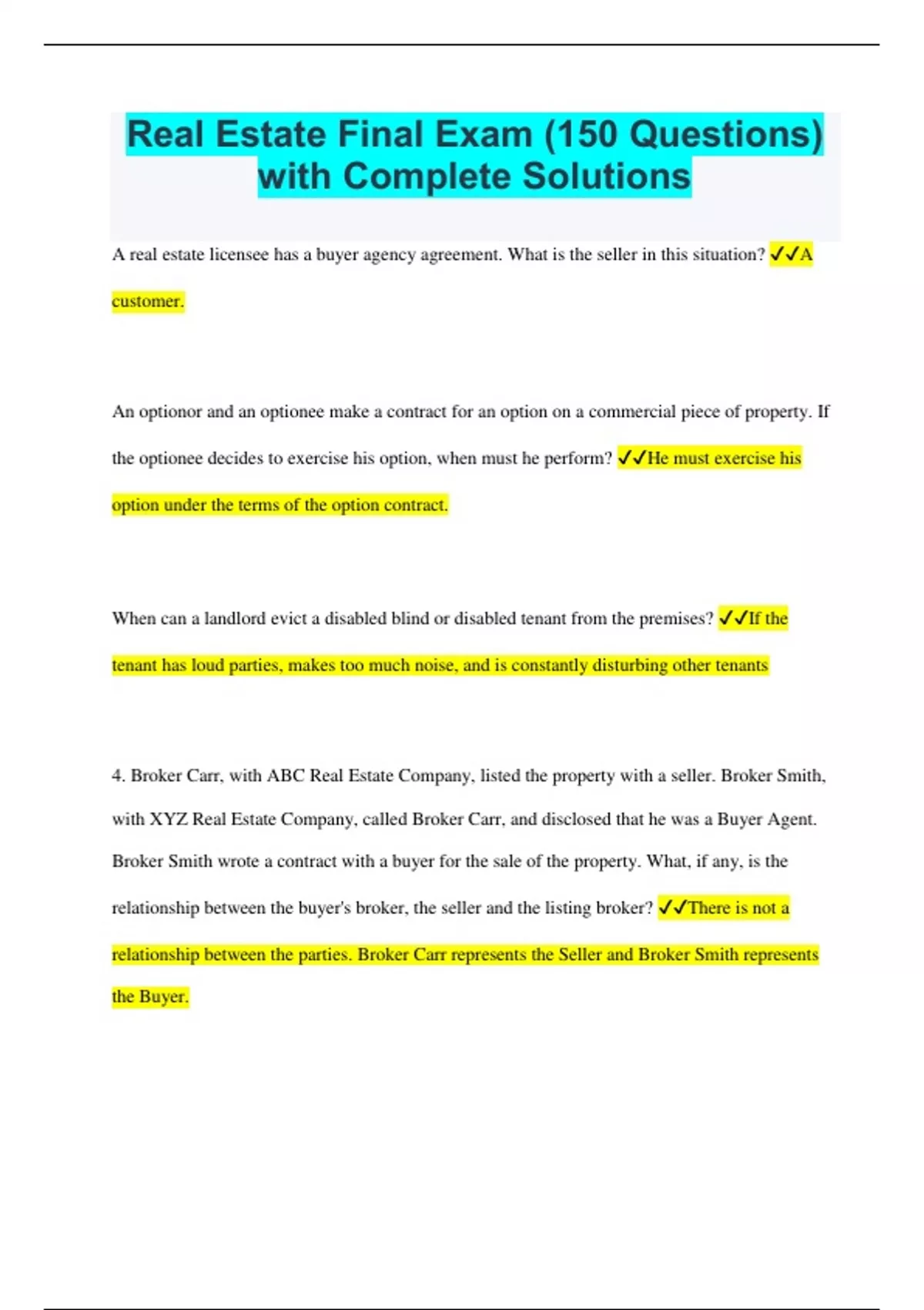 real estate final exam 150 questions with comple
