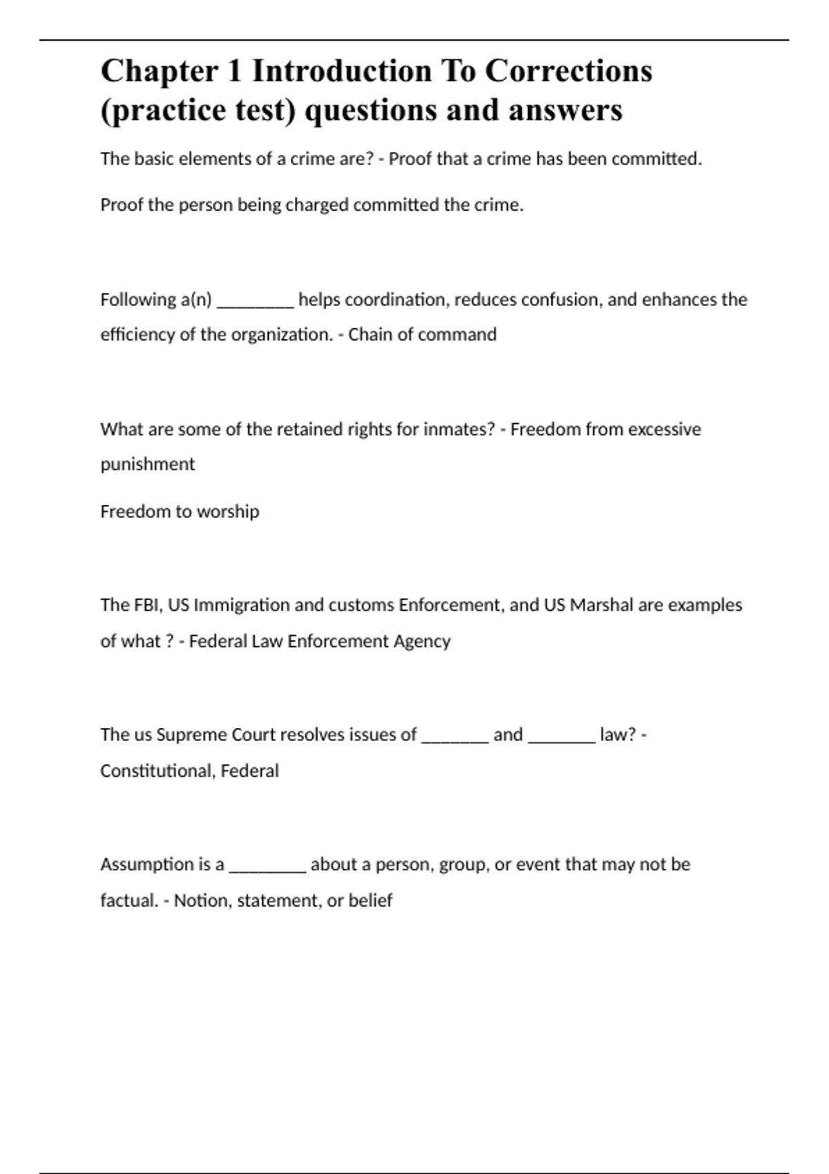 Chapter 1 Introduction To Corrections (practice test) questions and answers