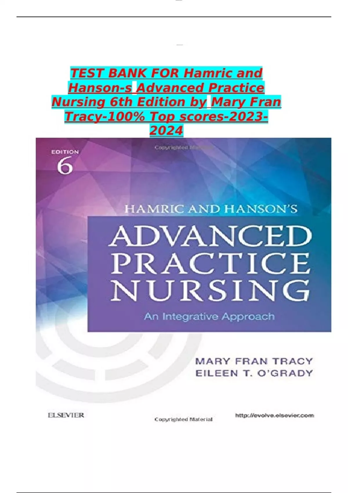Test Bank For Advanced Practice Nursing 6th Edition Hamric and Hanson's