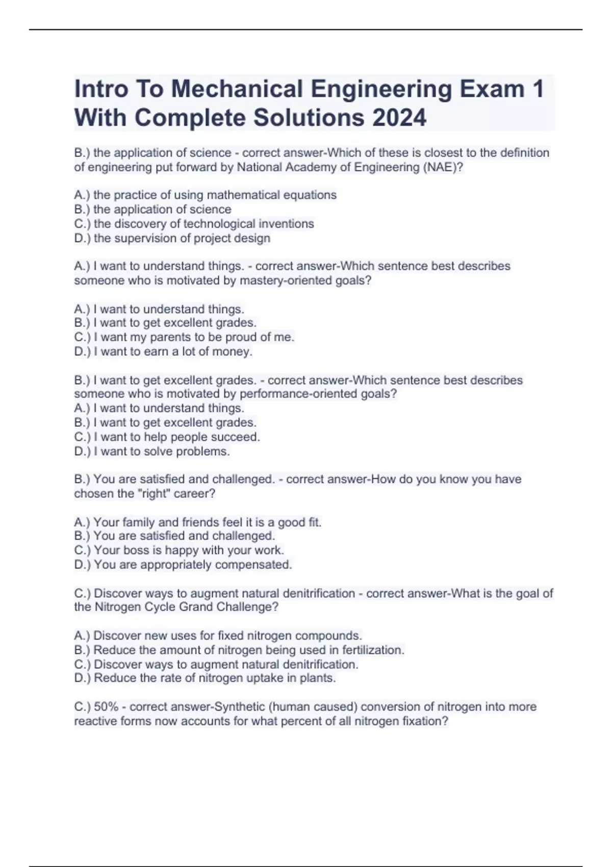 Intro To Mechanical Engineering Exam 1 With Complete Solutions 2024