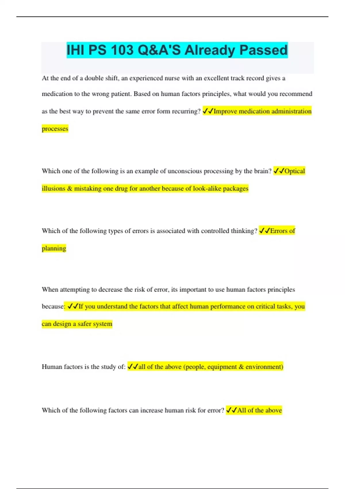 IHI PS 103 Q&A'S Already Passed