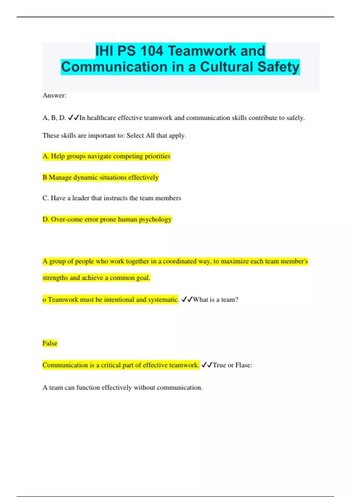 IHI PS 104 Teamwork and Communication in a Cultural Safety With 100% Verified Solutions