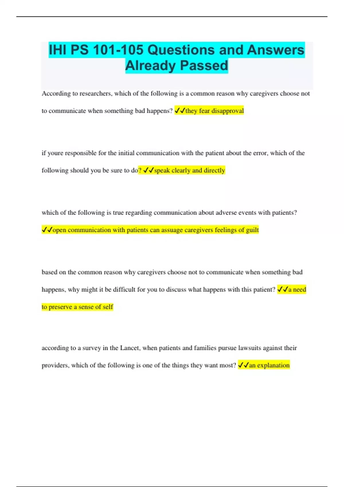 According to researchers, which of the following is a common reason why caregivers choose not to communicate when something bad happens? they fear disapproval if youre responsible for the initial communication with the patient about the error, which of the following should you be sure to do? speak clearly and directly which of the following is true regarding communication about adverse events with patients? open communication with patients can assuage caregivers feelings of guilt based on the common reason why caregivers choose not to communicate when something bad happens, why might it be difficult for you to discuss what happens with this patient? a need to preserve a sense of sel
