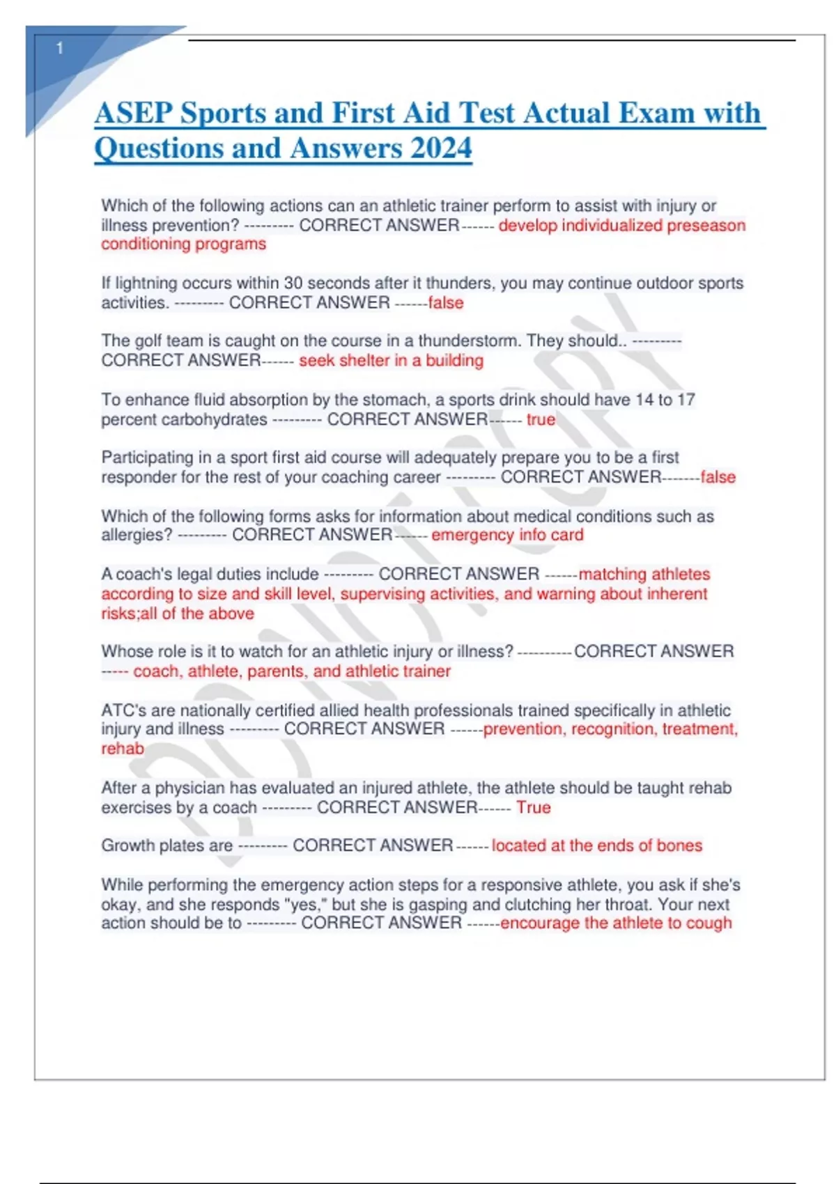 ASEP Sports and First Aid Test Actual Exam with Questions and Answers 2024