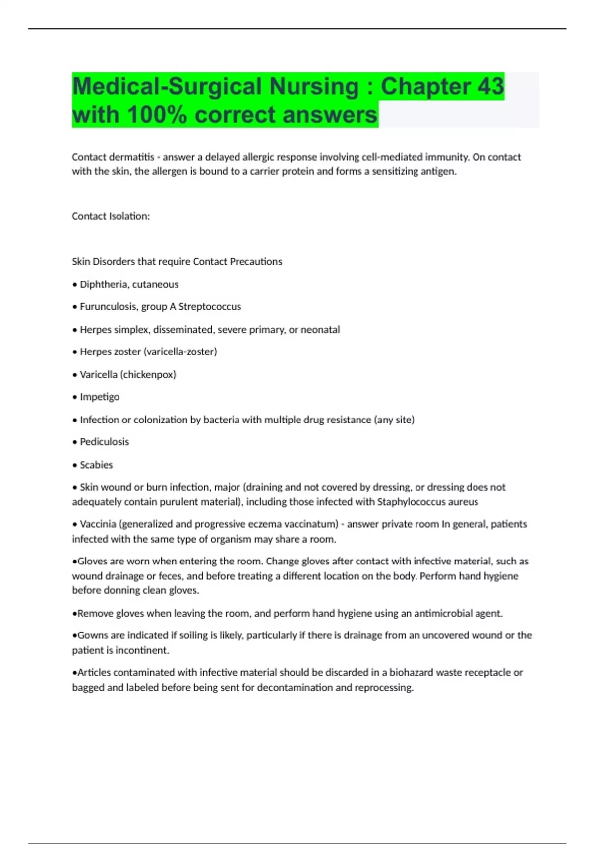 Medical-Surgical Nursing Chapter 43 with 100% correct answers
