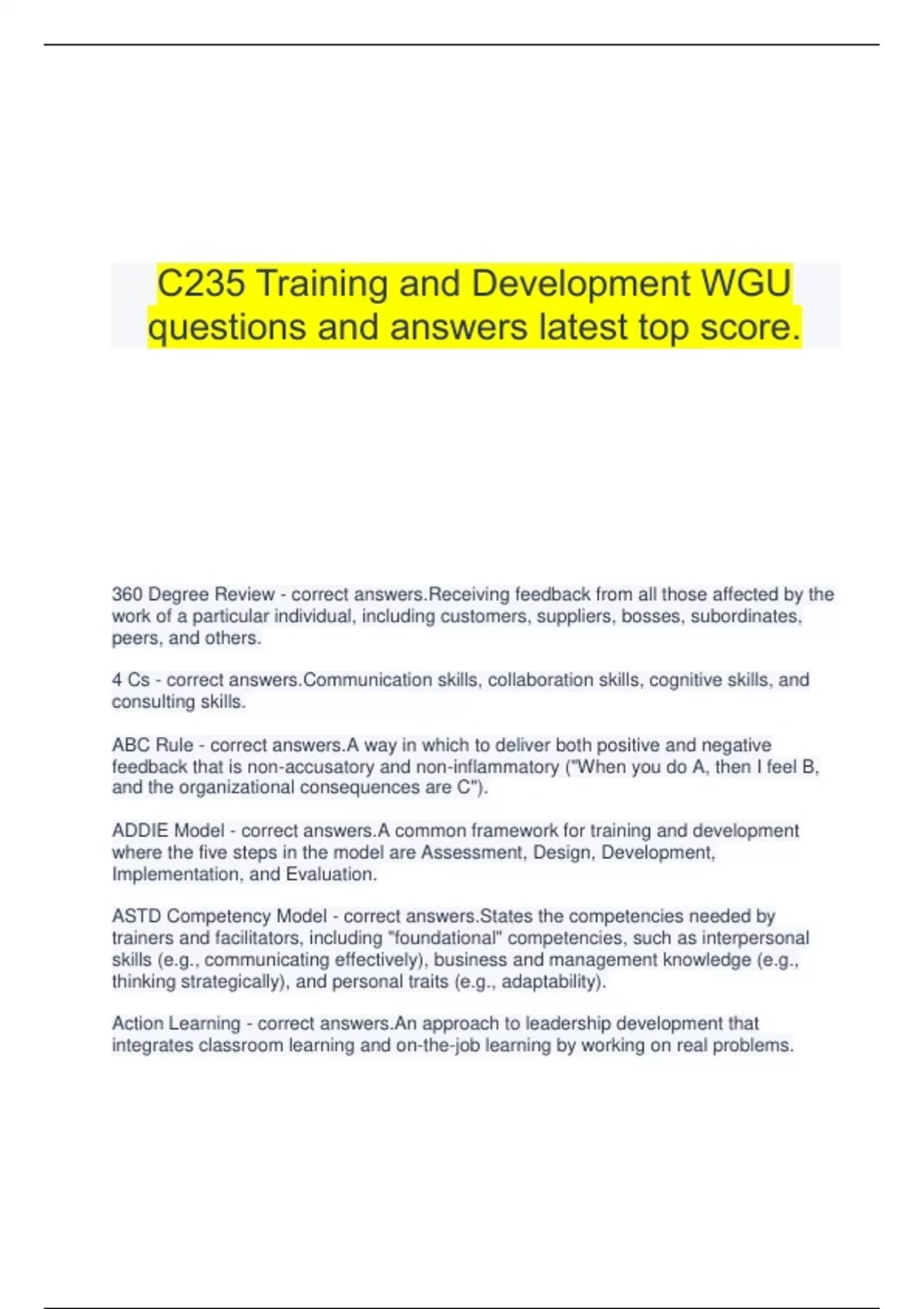 C235 Training and Development WGU questions and answers latest top score.
