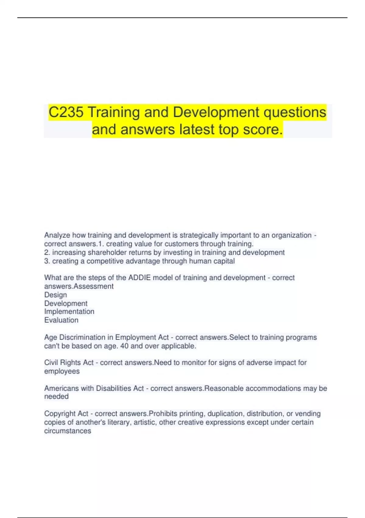 C235 Training and Development questions and answers latest top score.