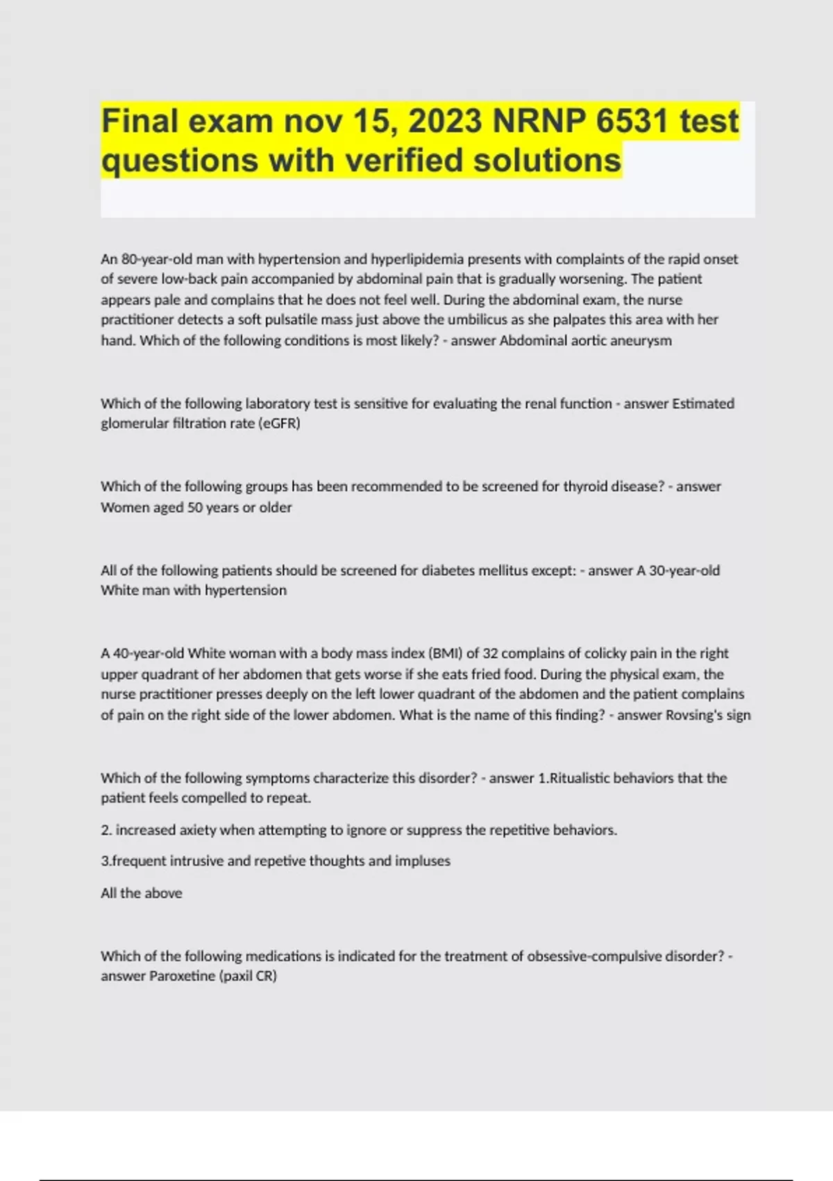 Final exam nov 15, 2023 NRNP 6531 test questions with verified solutions.