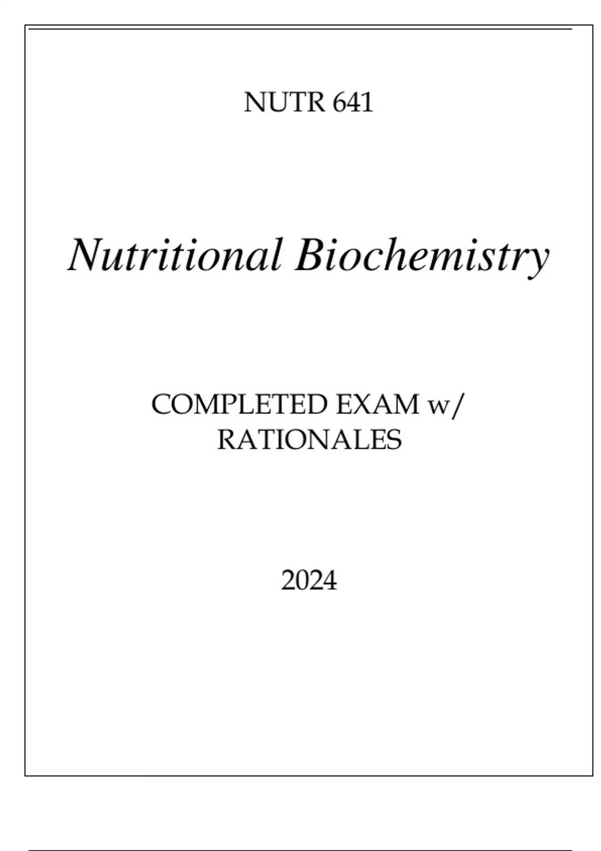 NUTR 641 NUTRITIONAL BIOCHEMISTRY COMPLETED EXAM WITH RATIONALES 2024.