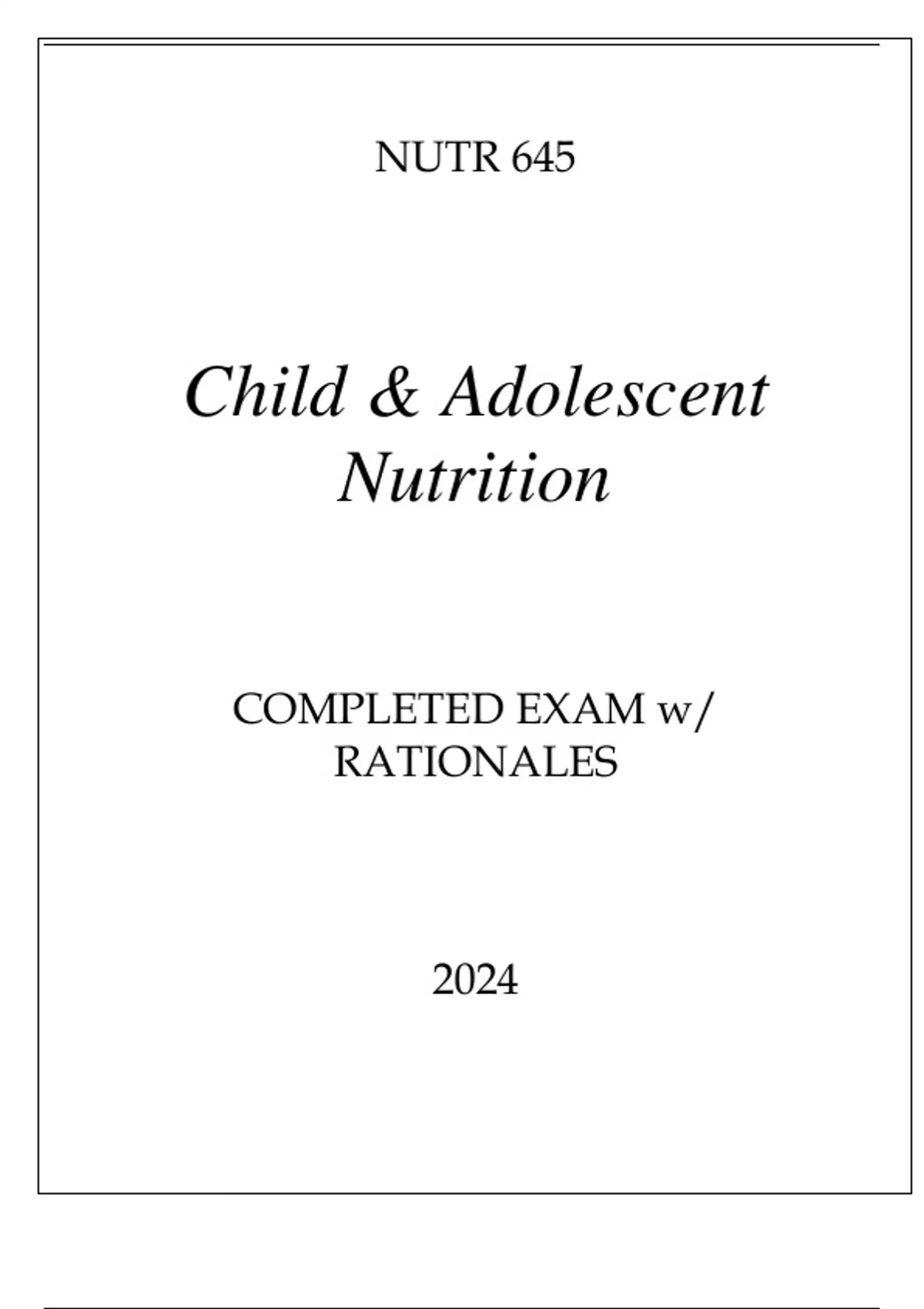 NUTR 645 CHILD & ADOLESCENT NUTRITION COMPLETED EXAM WITH RATIONALES 2024..