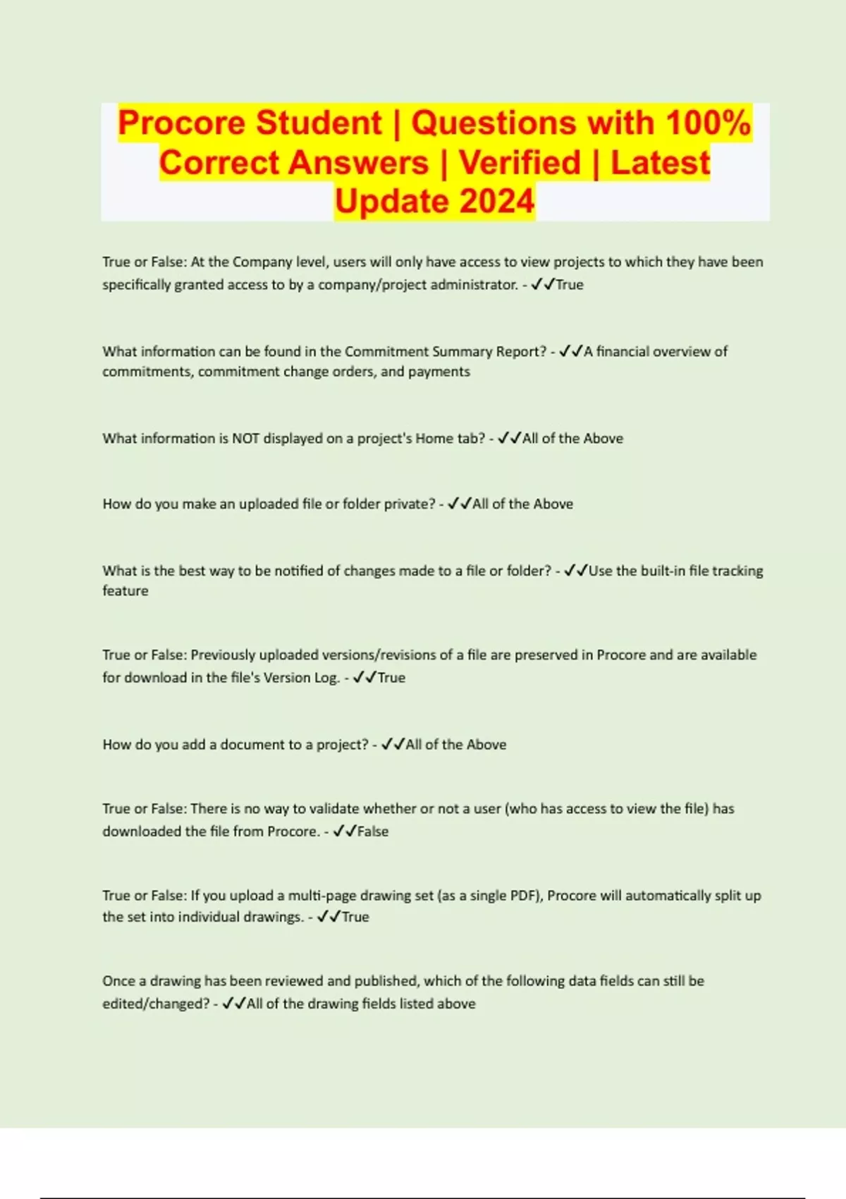 Procore Student | Questions with 100% Correct Answers | Verified | Latest Update 2024