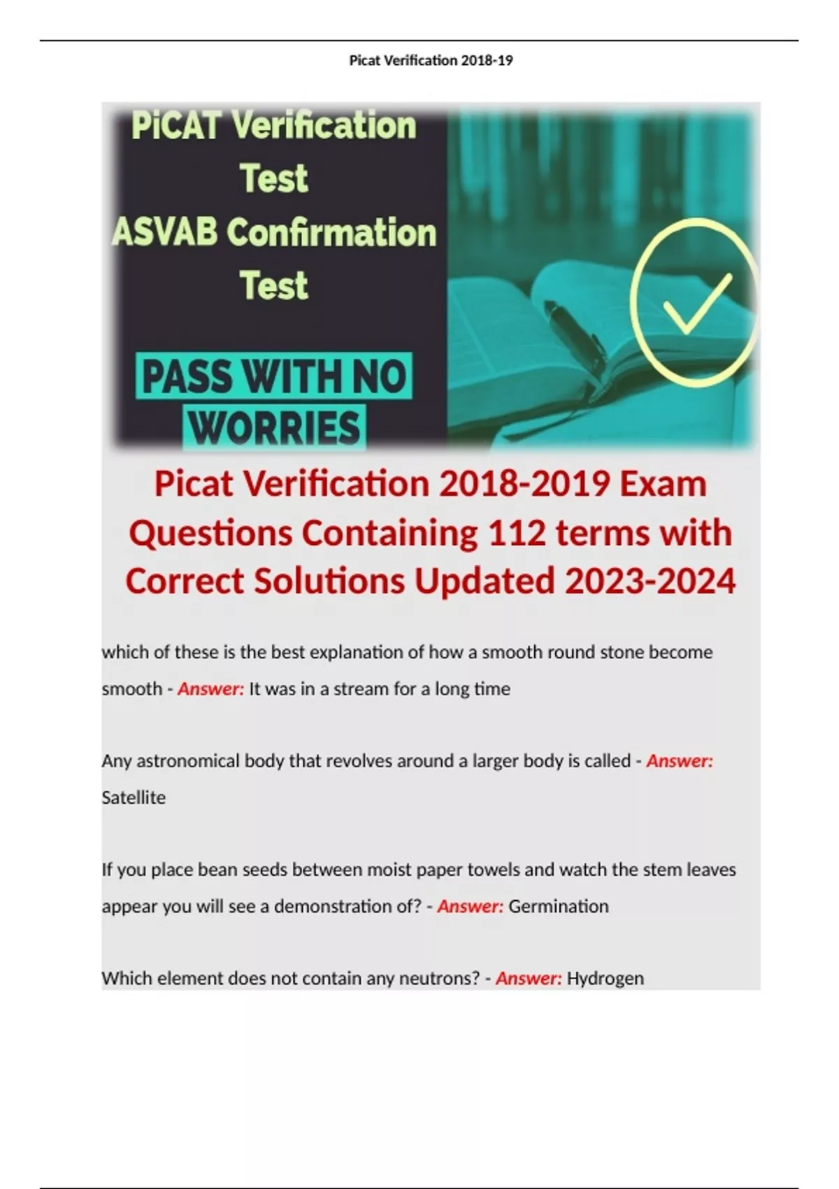 picat verification exam questions contai