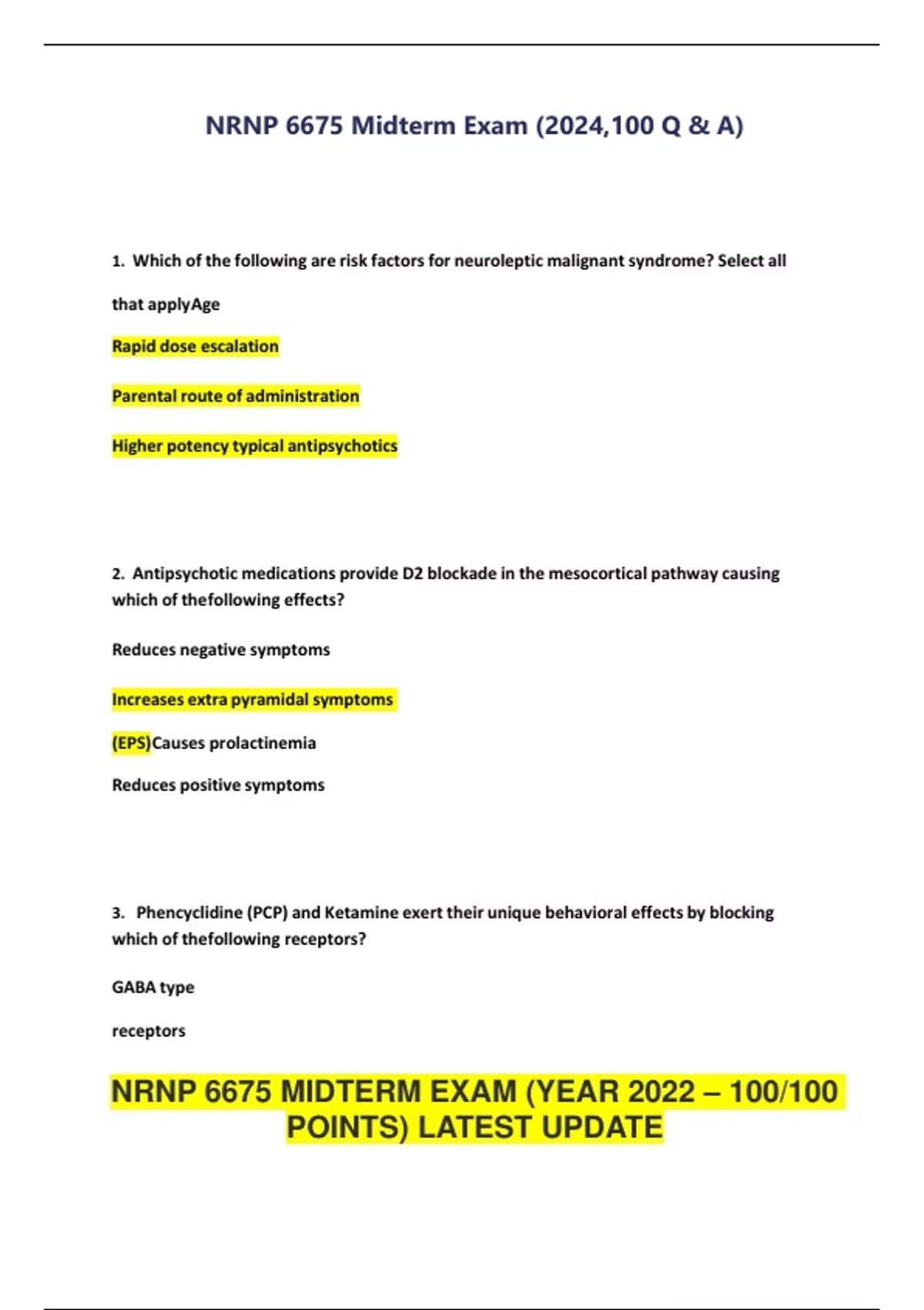 NRNP 6675 Midterm Exam (2024,100 Q & A).