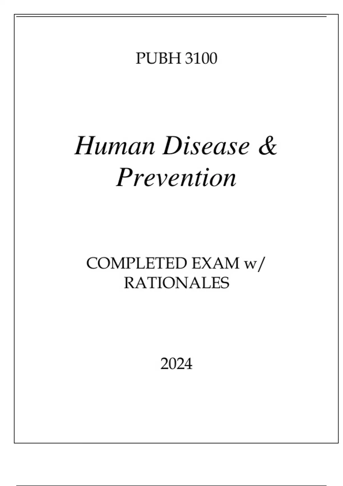 PUBH 3100 HUMAN DISEASE & PREVENTION COMPLETED EXAM WITH RATIONALES 2024