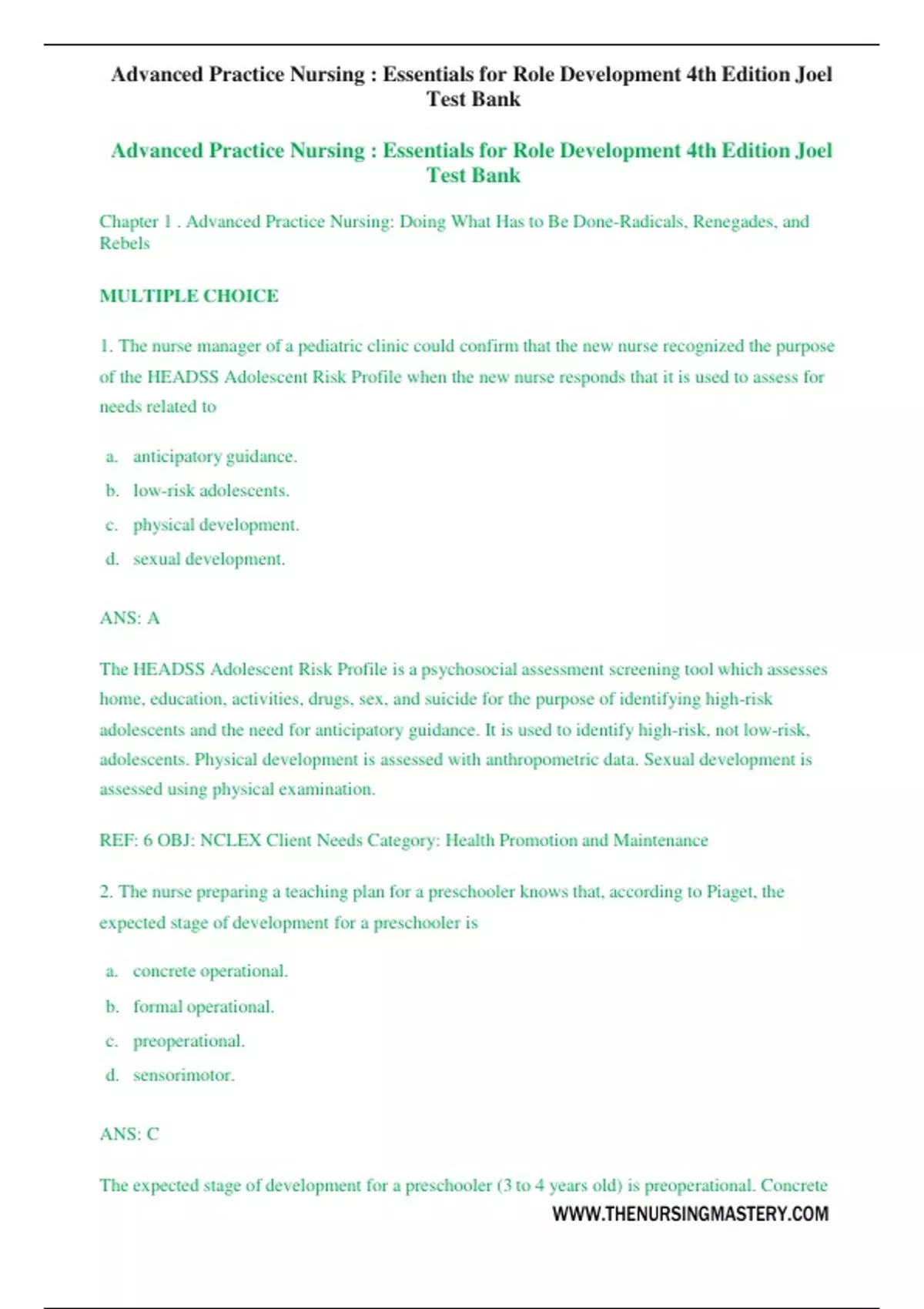 , Advanced Practice Nursing : Essentials for Role Development 4th Edition Joel