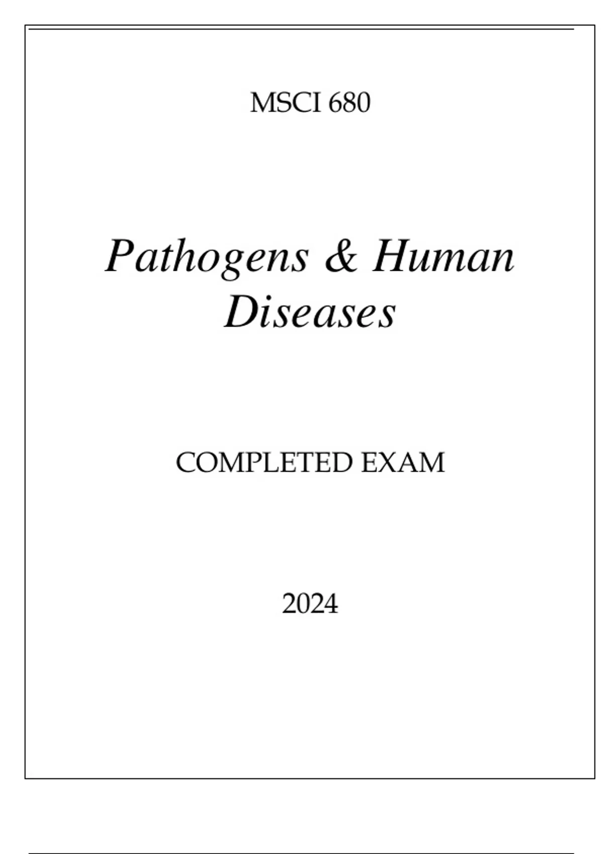 MSCI 680 PATHOGENS & HUMAN DISEASES COMPLETED EXAM 2024.