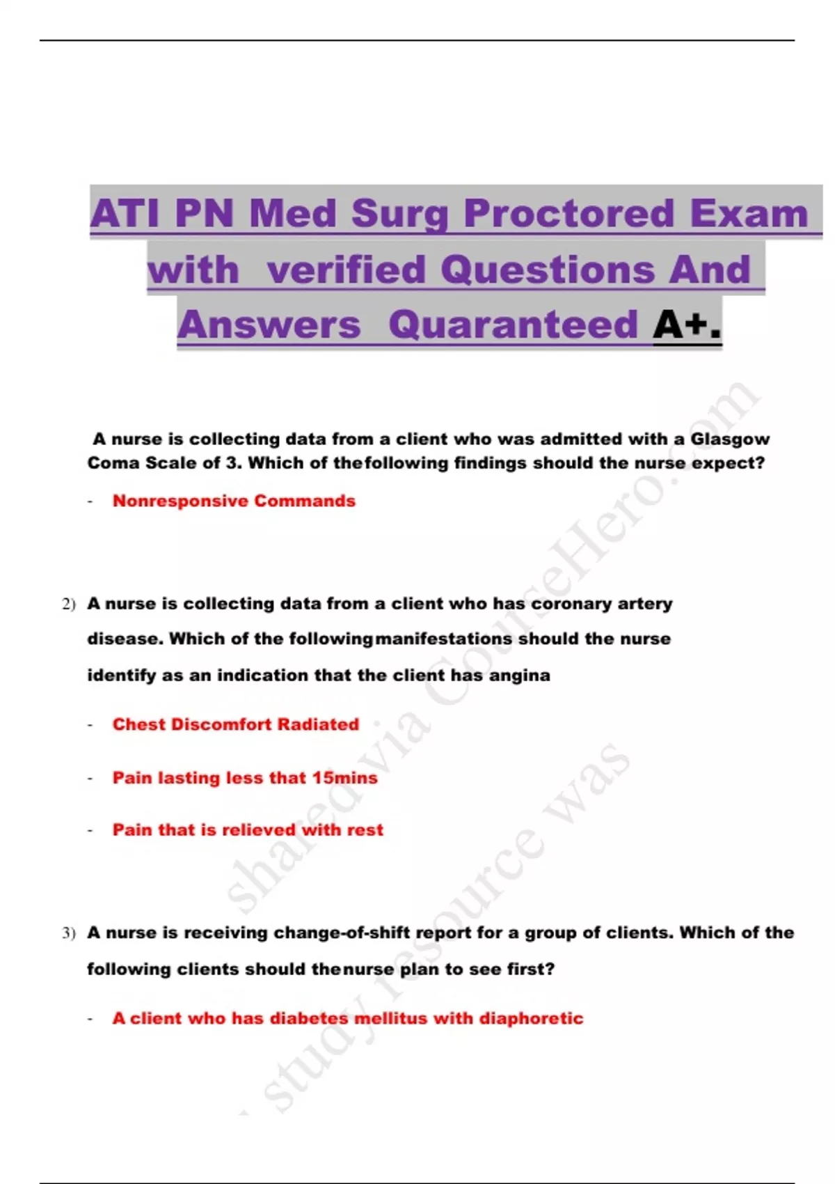 2) A nurse is collecting data from a client who has coronary artery