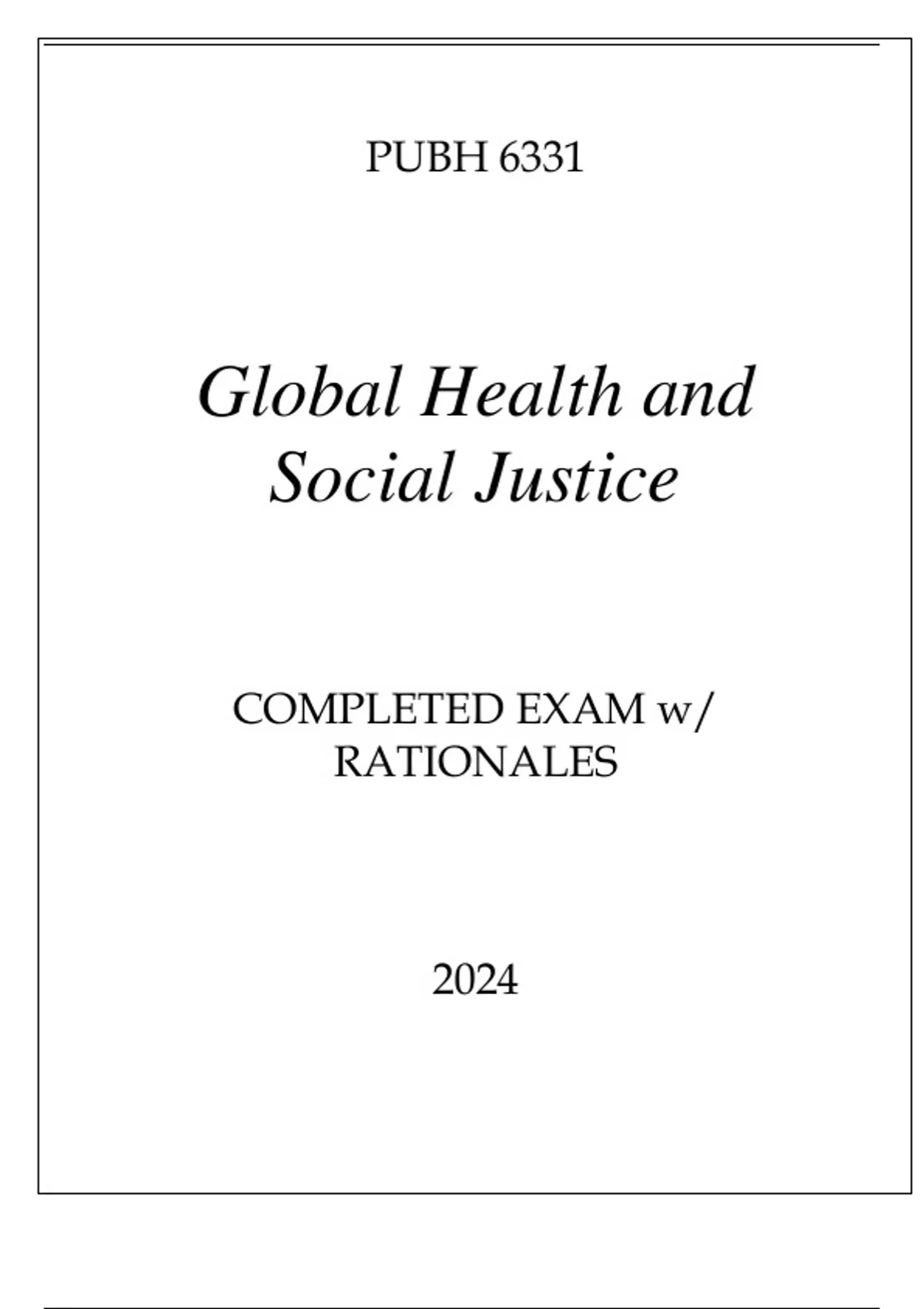PUBH 6331 GLOBAL HEALTH & SOCIAL JUSTICE COMPLETED EXAM WITH RATIONALES 2024