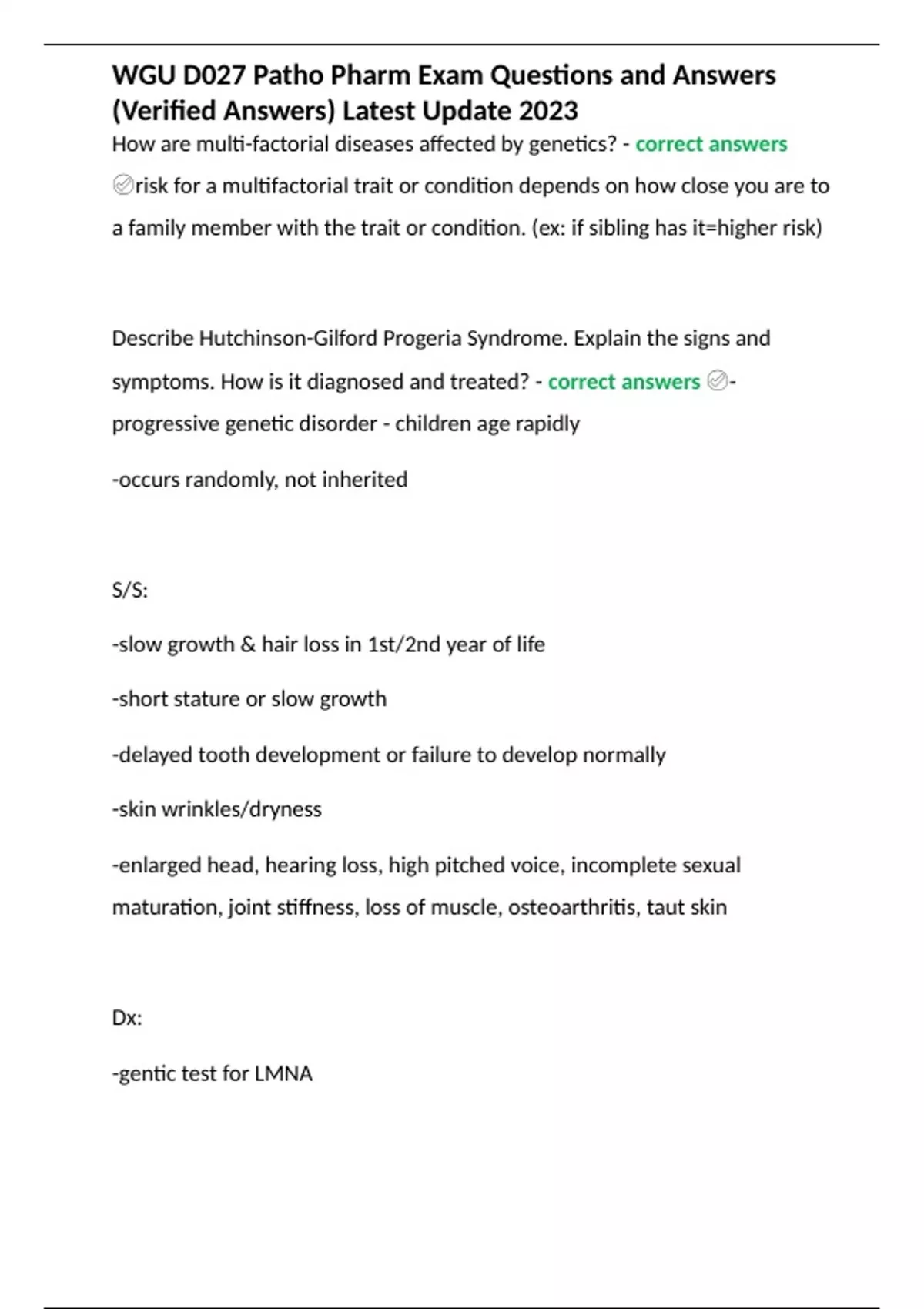 WGU D027 Patho Pharm Exam Questions and Answers (Verified Answers) Latest Update 2023