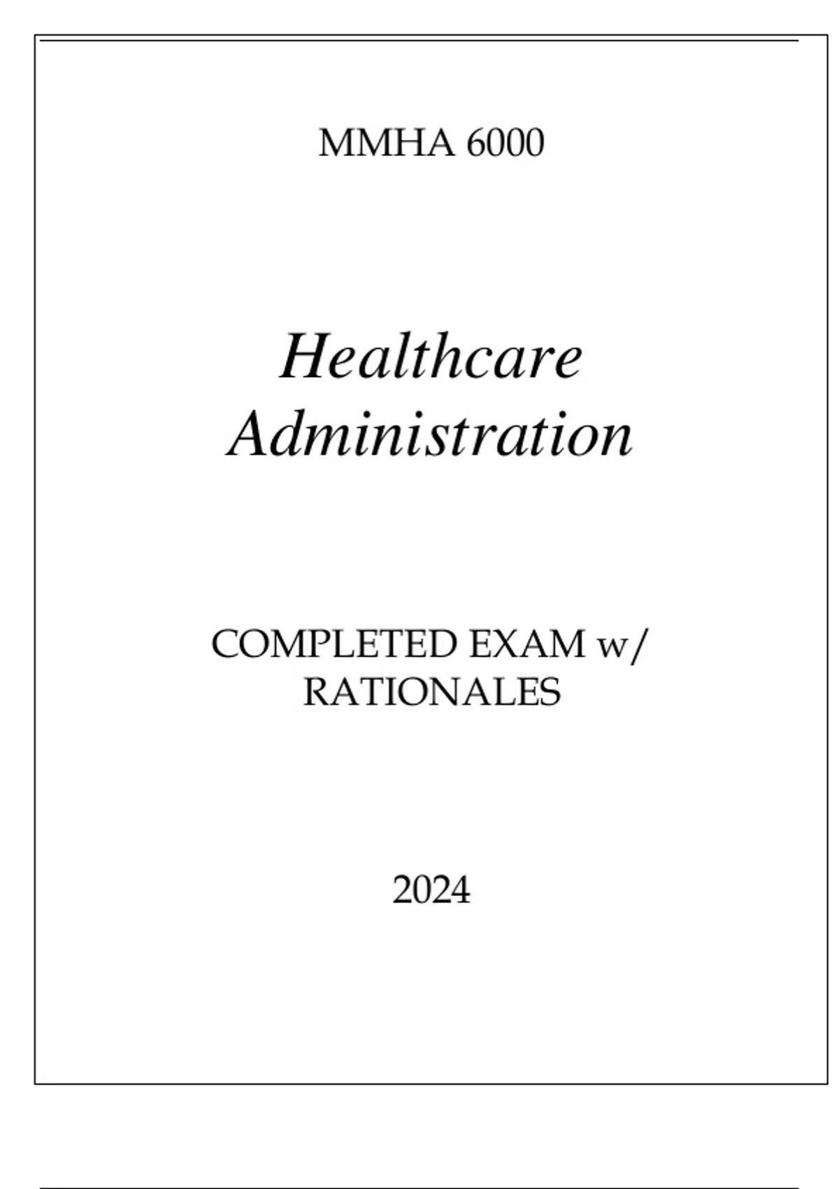 MMHA 6000 HEALTHCARE ADMINISTRATION COMPLETED EXAM WITH RATIONALES 2024.