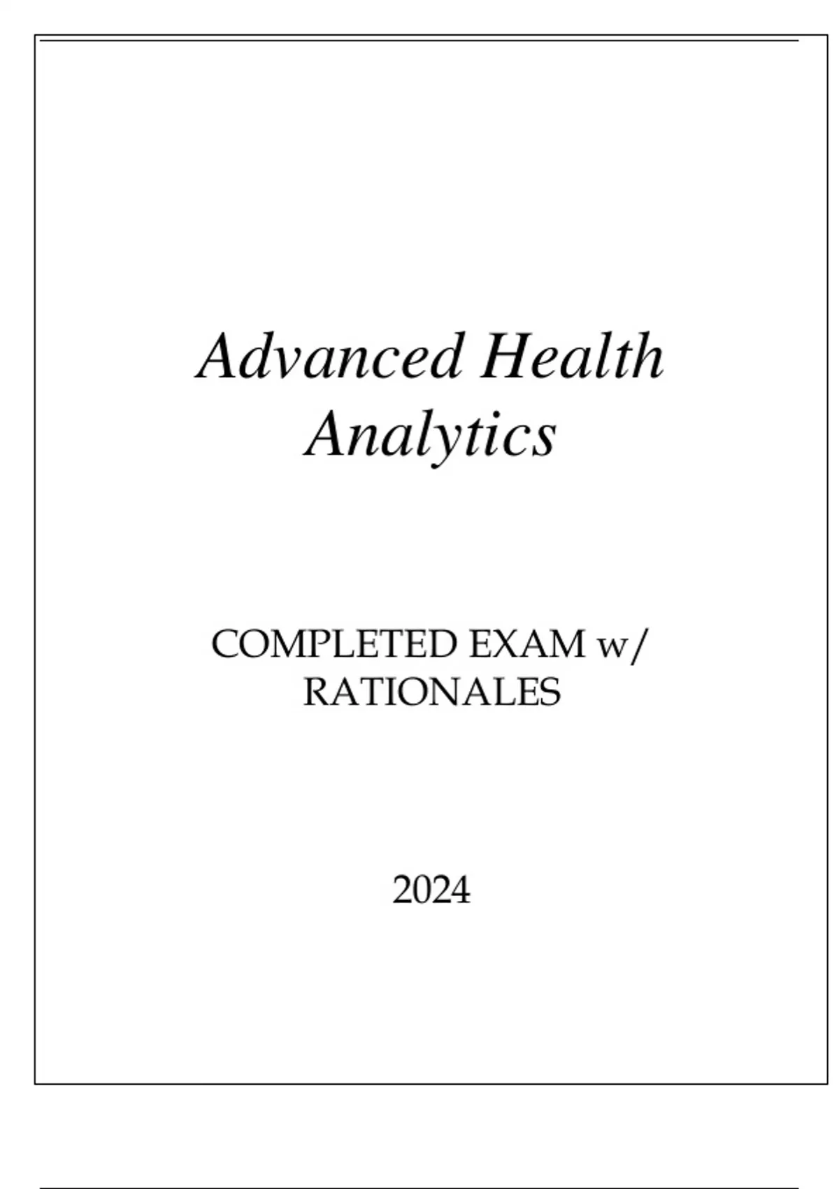 ADVANCED HEALTH ANALYTICS COMPLETED EXAM WITH RATIONALES 2024.