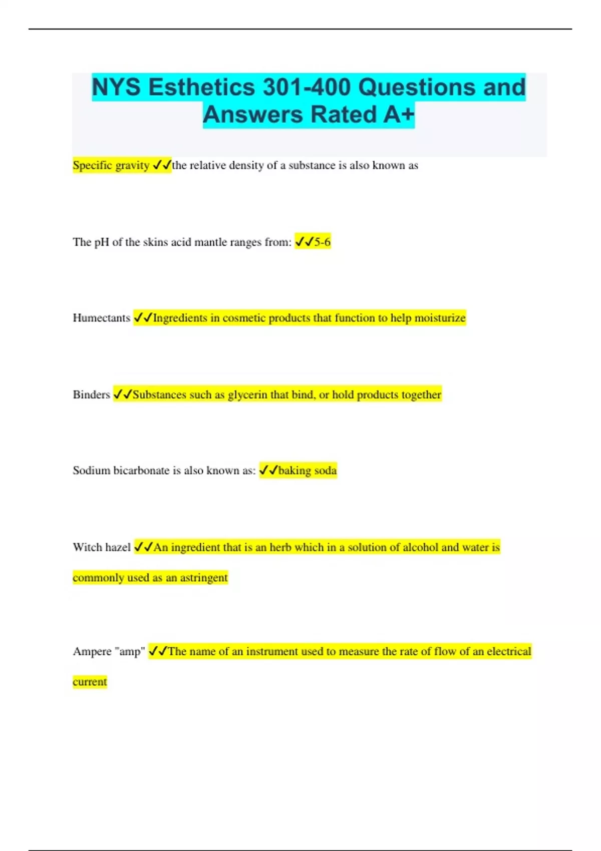 NYS Esthetics 301-400 Questions and Answers Rated A+