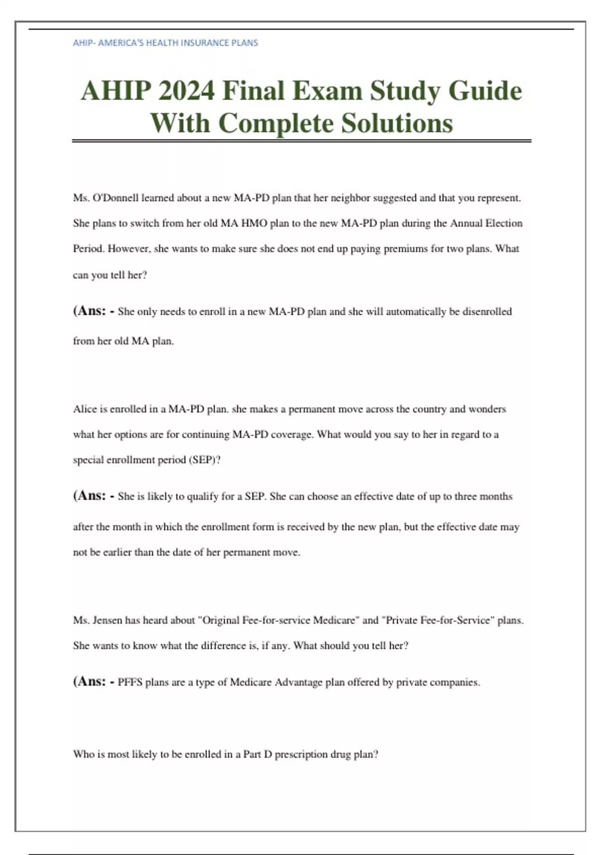 AHIP 2024 Final Exam Study Guide With Complete Solutions