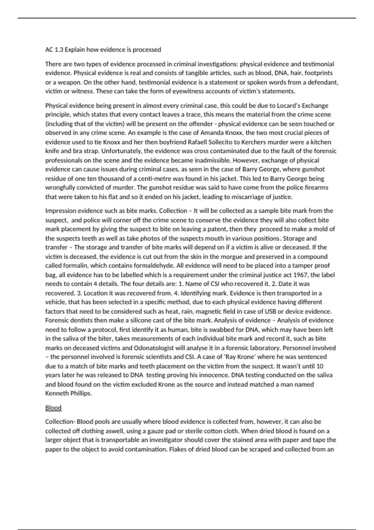 Summary Ac 1.3 Explain how evidence is processed