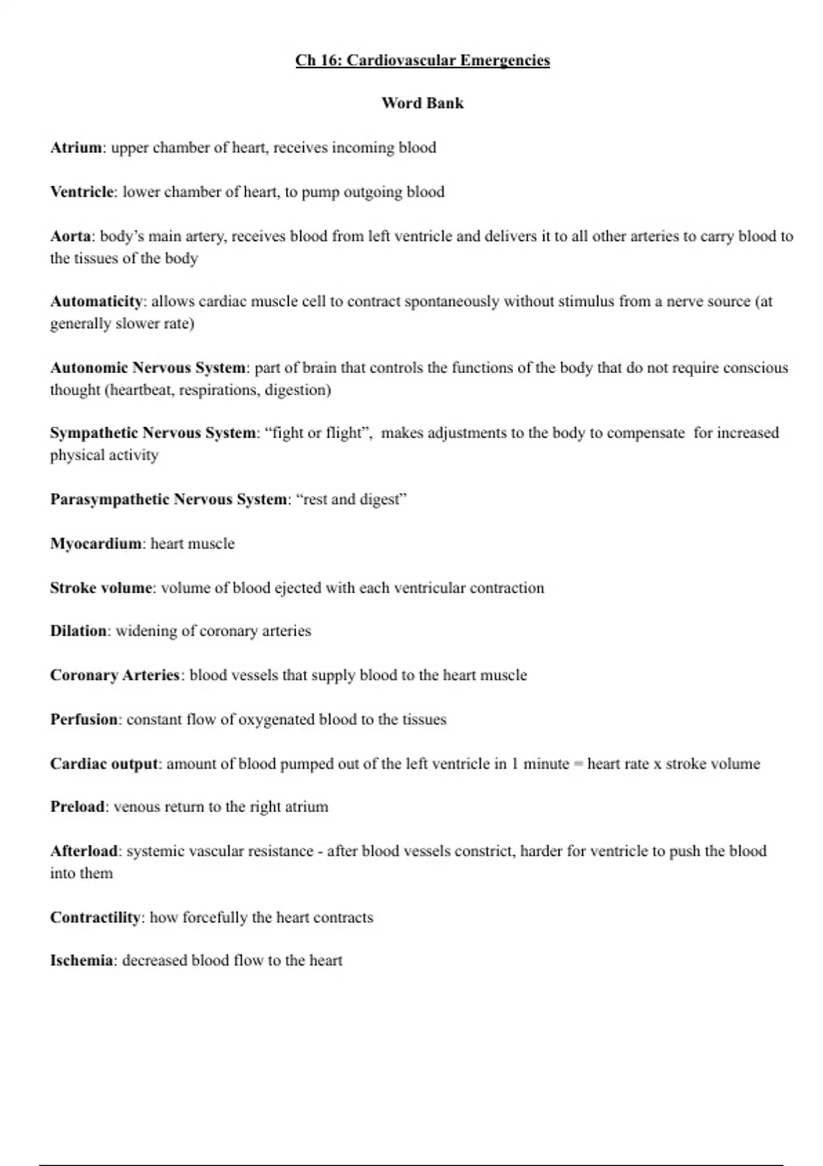 Summary Emergency Medical Technician Chapter 16: Cardiovascular Emergencies