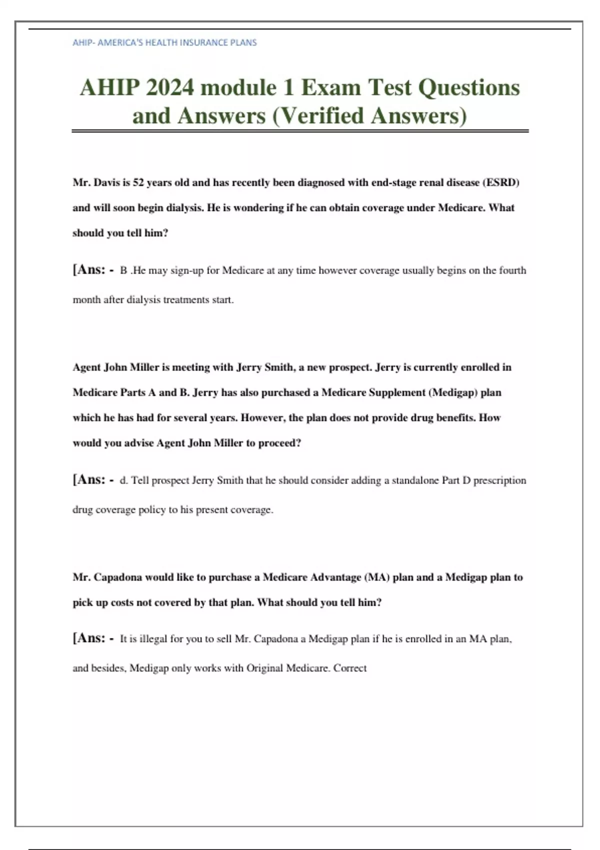 AHIP 2024 module 1 Exam Test Questions and Answers (Verified Answers),AHIP 2024 module 1 Exam Test Questions and Answers (Verified Answers)