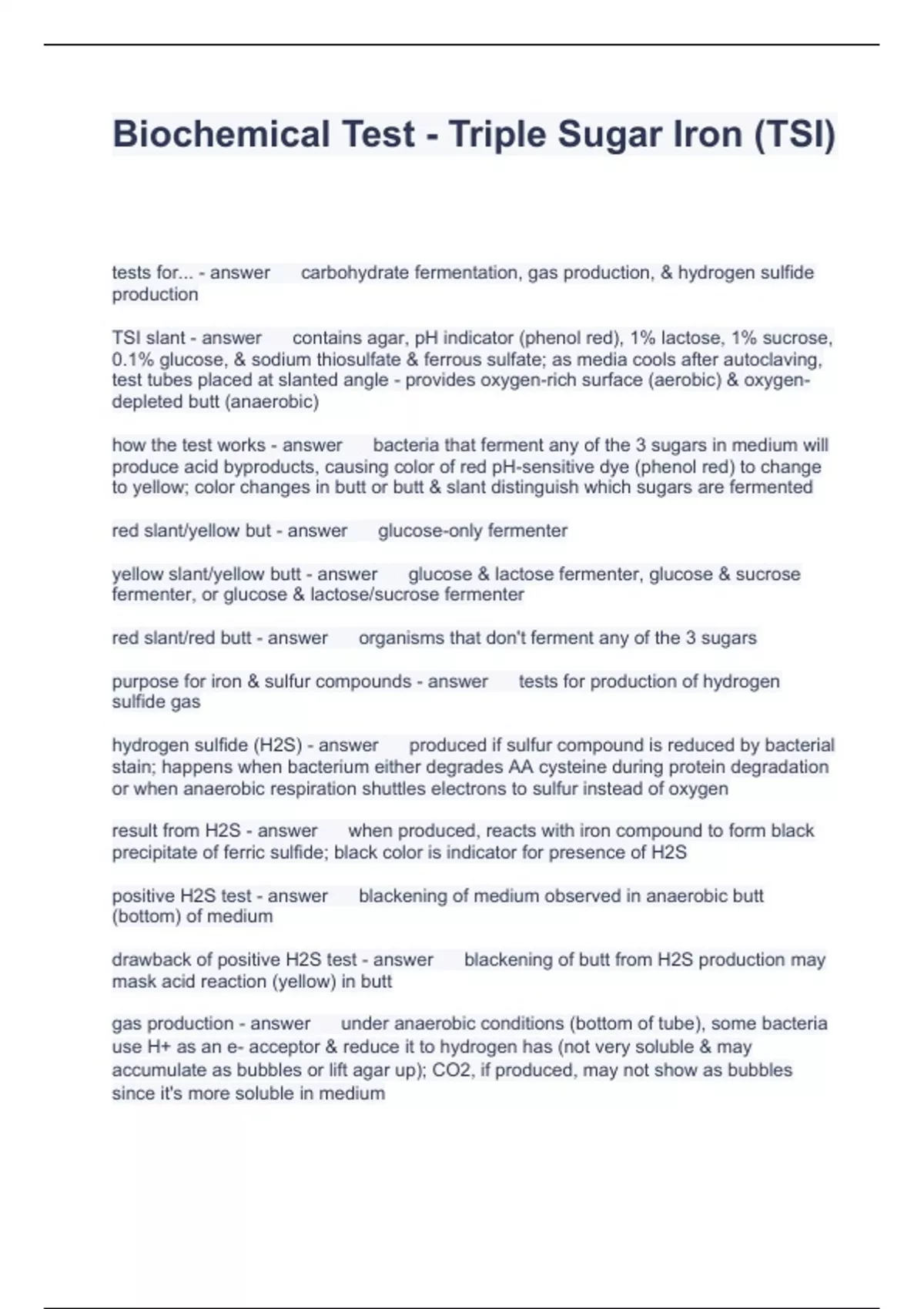 Biochemical Test - Triple Sugar Iron (TSI) Questions with solutions 2024