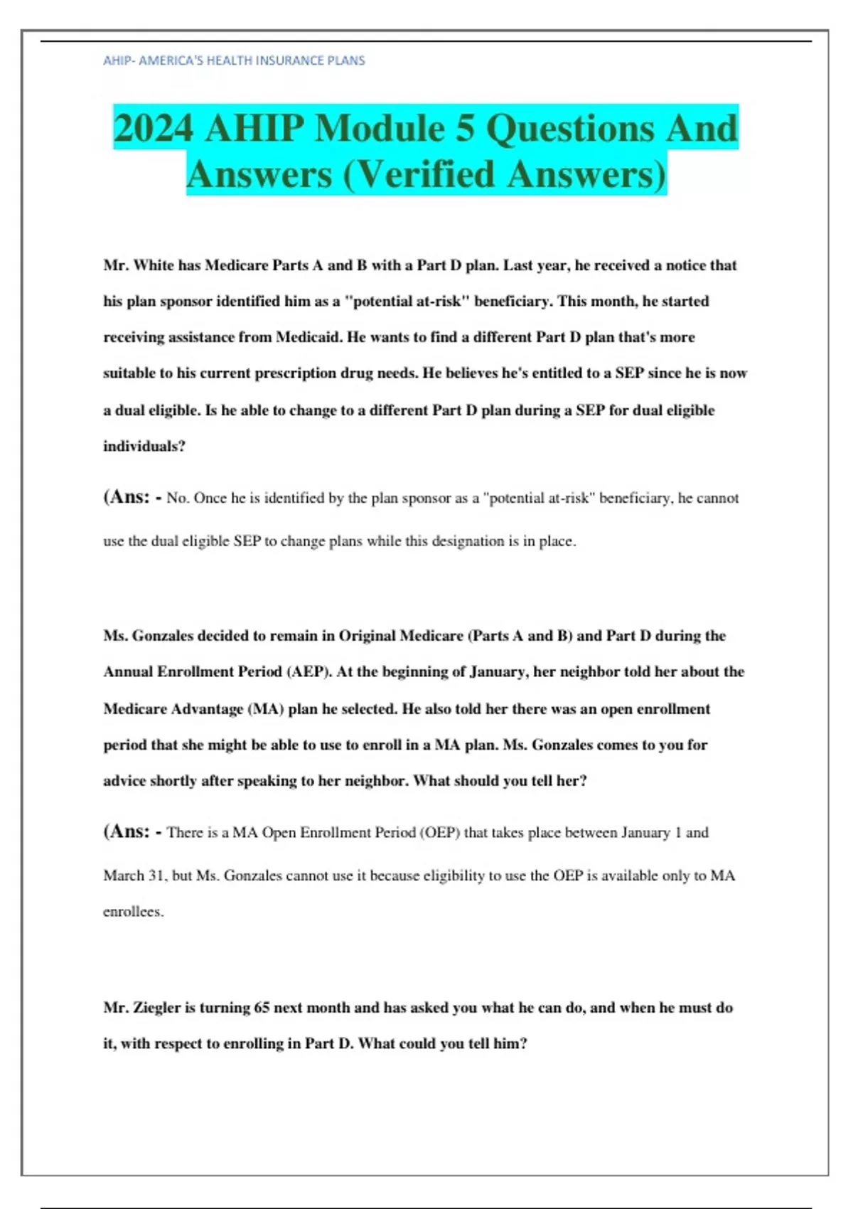 2024 AHIP Module 5 Questions And Answers (Verified Answers),2024 AHIP Module 5 Questions And Answers (Verified Answers)