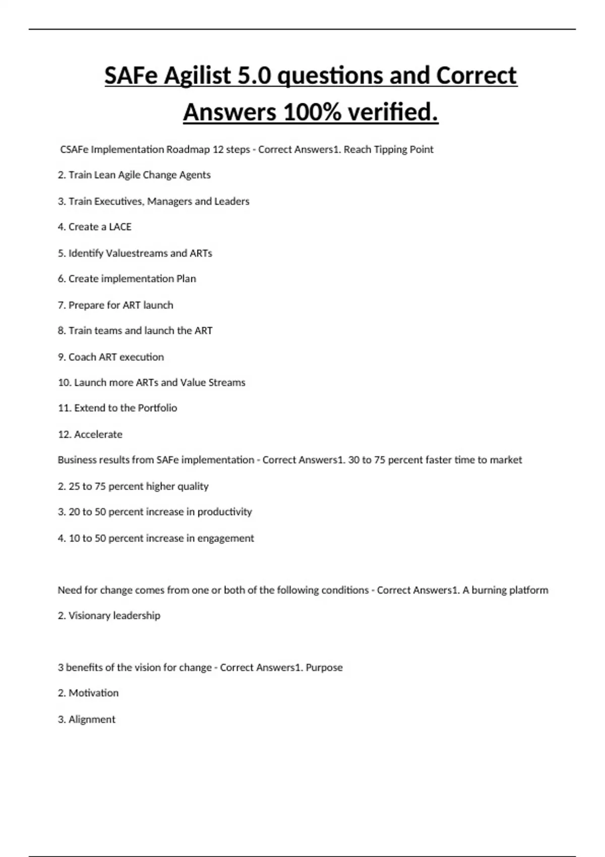 SAFe Agilist 5.0 questions and Correct Answers 100% verified.