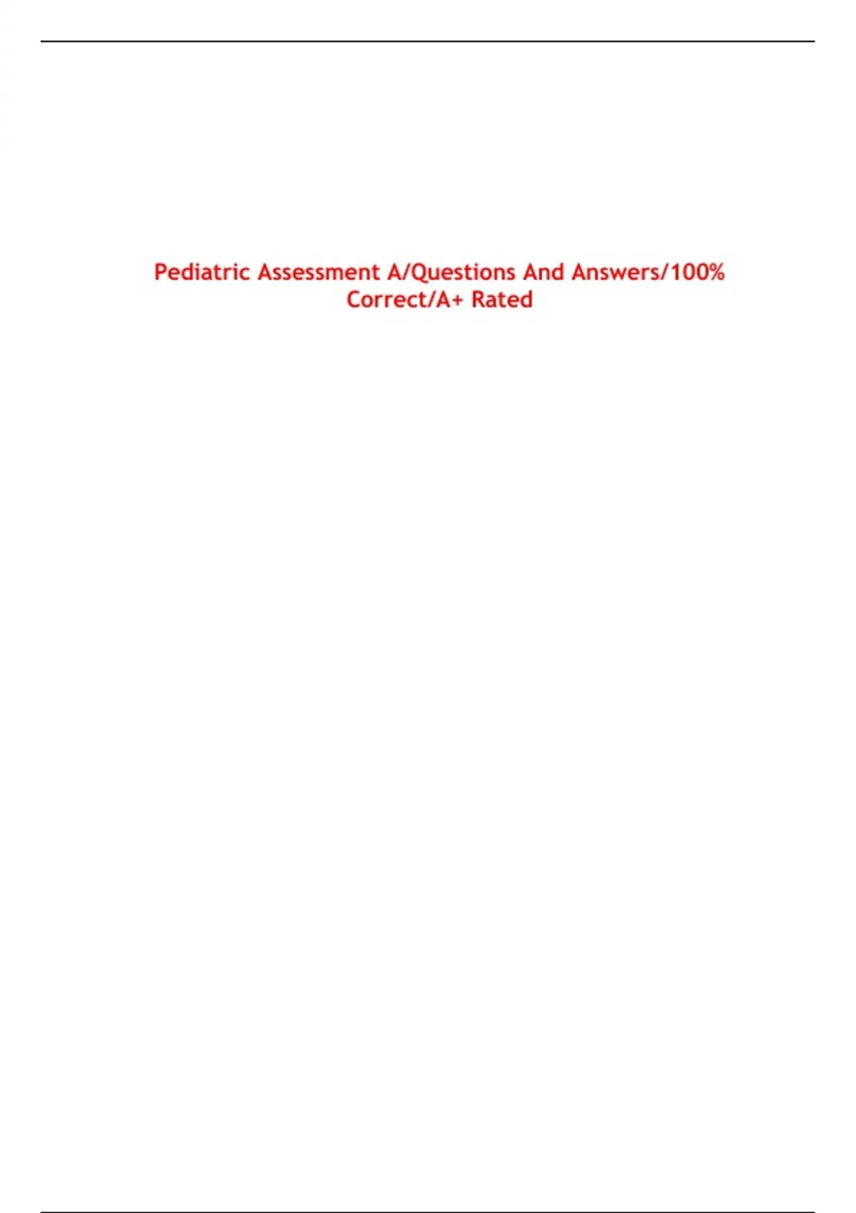 Pediatric Assessment A/Questions And Answers/100% Correct/A+ Rated
